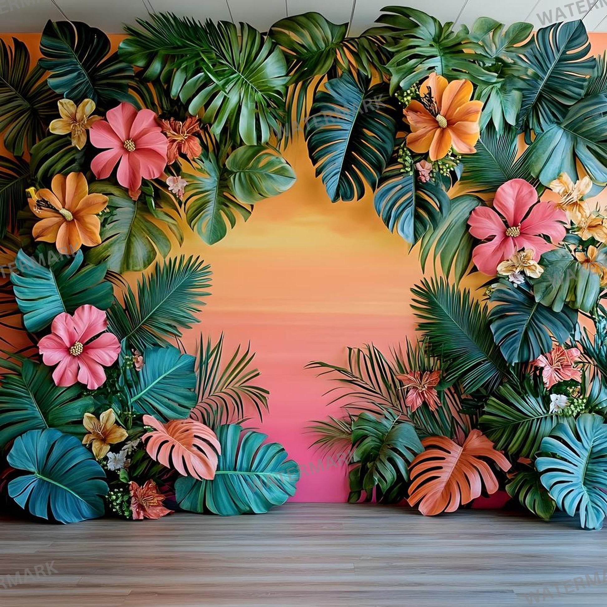 Tropical Luau Backdrops - Vibrant Beach & Palm Tree Digital Backgrounds for Summer Photography - Tropical, Hawaii, Studio Backgrounds