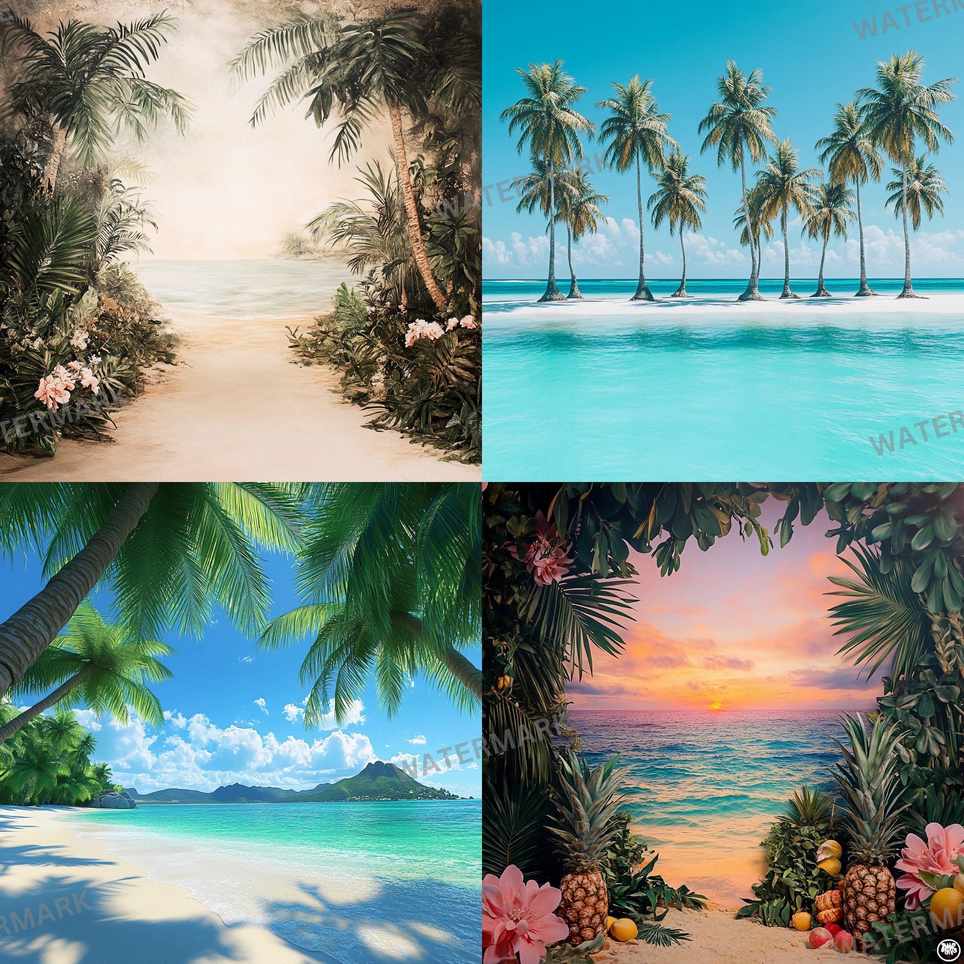 TROPICAL PHOTOGRAPHY BACKDROPS Digital Backgrounds for Photography, Bright Colorful Beaches, Palm Trees, Oceans & Floral Scene Overlays