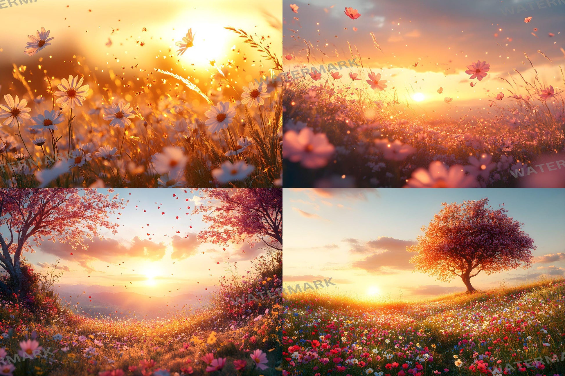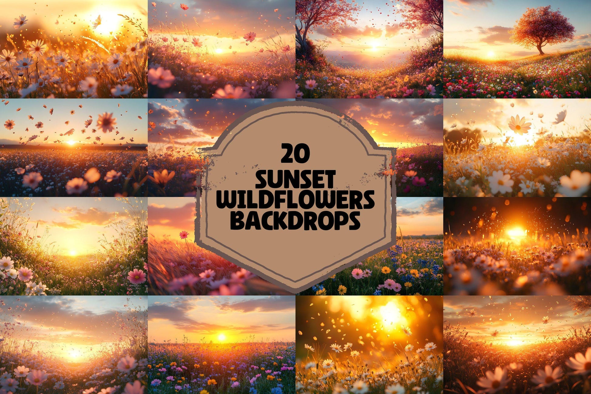Bring the magic of golden hour wildflowers to your photography with this set of 20 digital backdrops! Featuring lush wildflower fields, warm glowing sunsets, and dreamy golden landscapes.