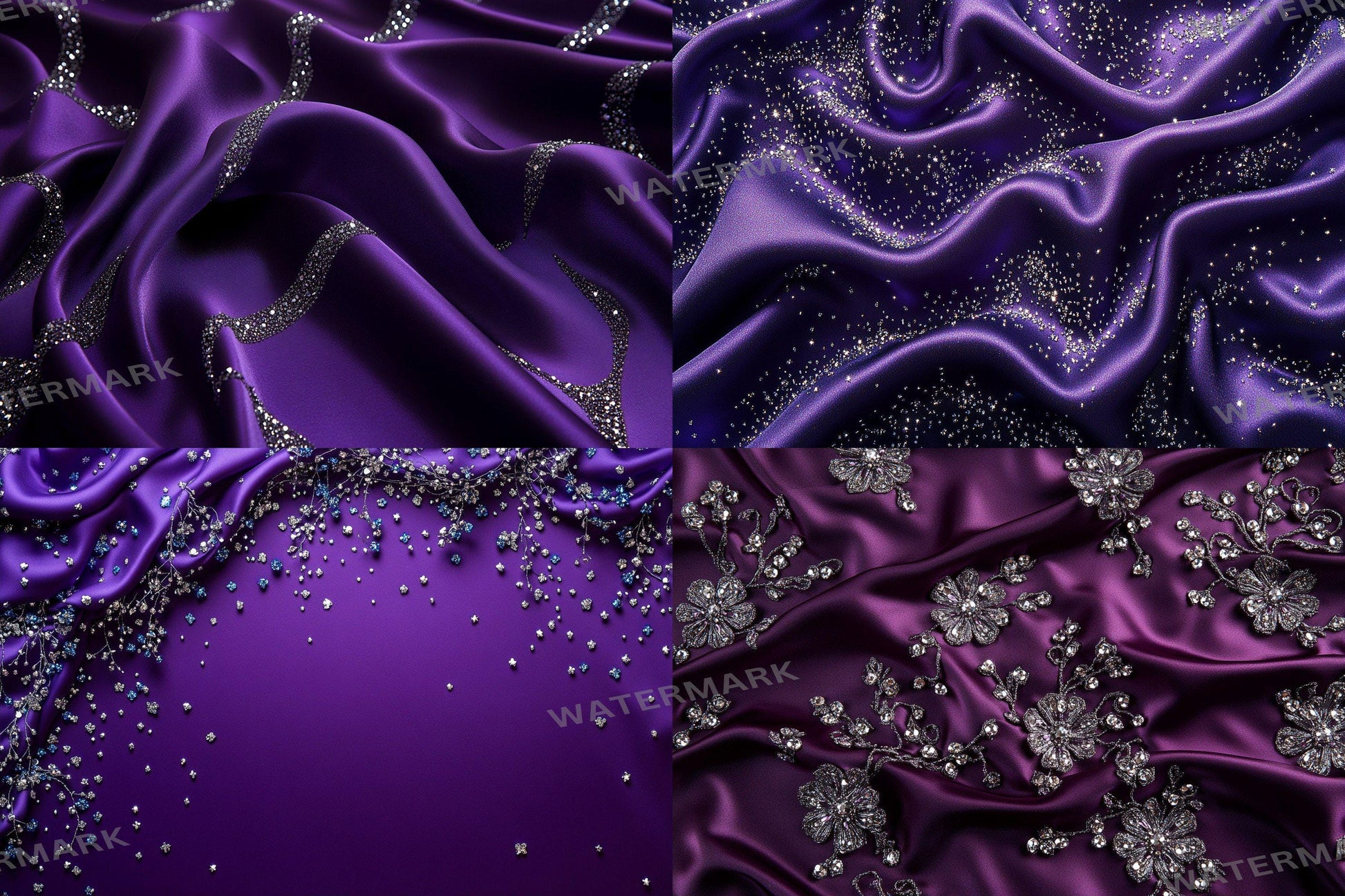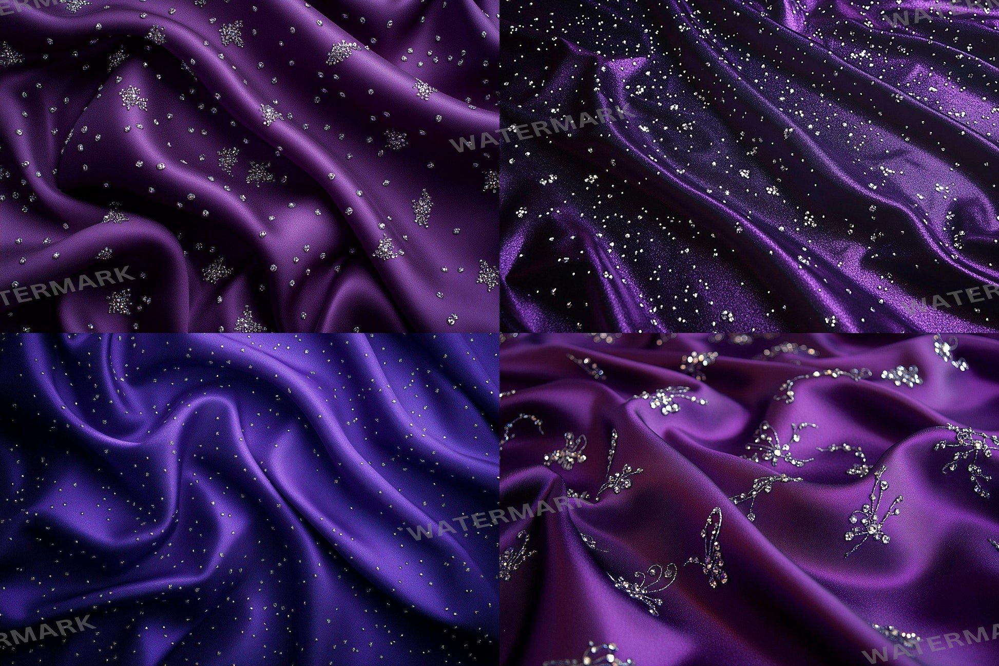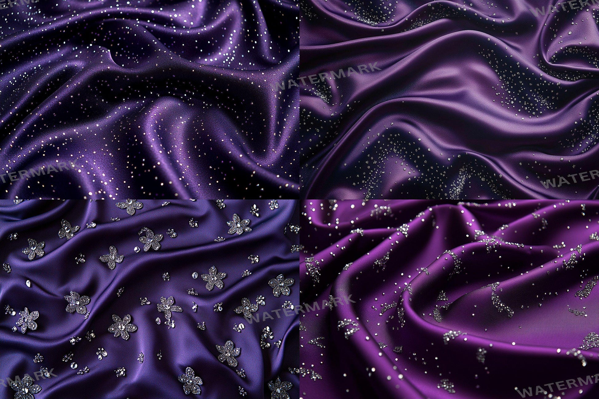 Purple Satin Embellished Backdrops | Digital Luxury Fabric Scenes | Glamour & Fantasy Photography Backgrounds - Purple Backdrops