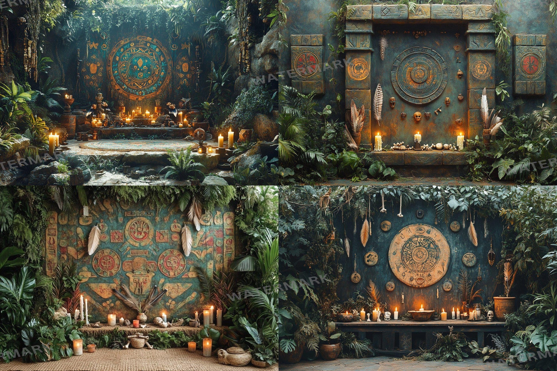 Immerse yourself in the mystical Amazon! This set offers 35 unique digital backdrops of shamanic ritual spaces. Ideal for spiritual themes, photography, and commercial projects. High-resolution, instant download.