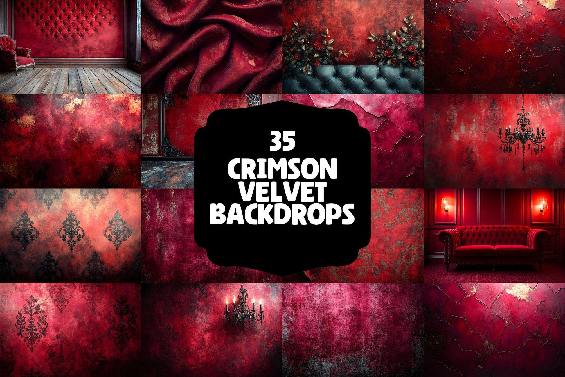 Crimson Velvet Backdrops, Rich Red Fabric Texture Digital Background, Luxurious Moody Romantic Studio Photo Booth Prop, Elegant Drapes