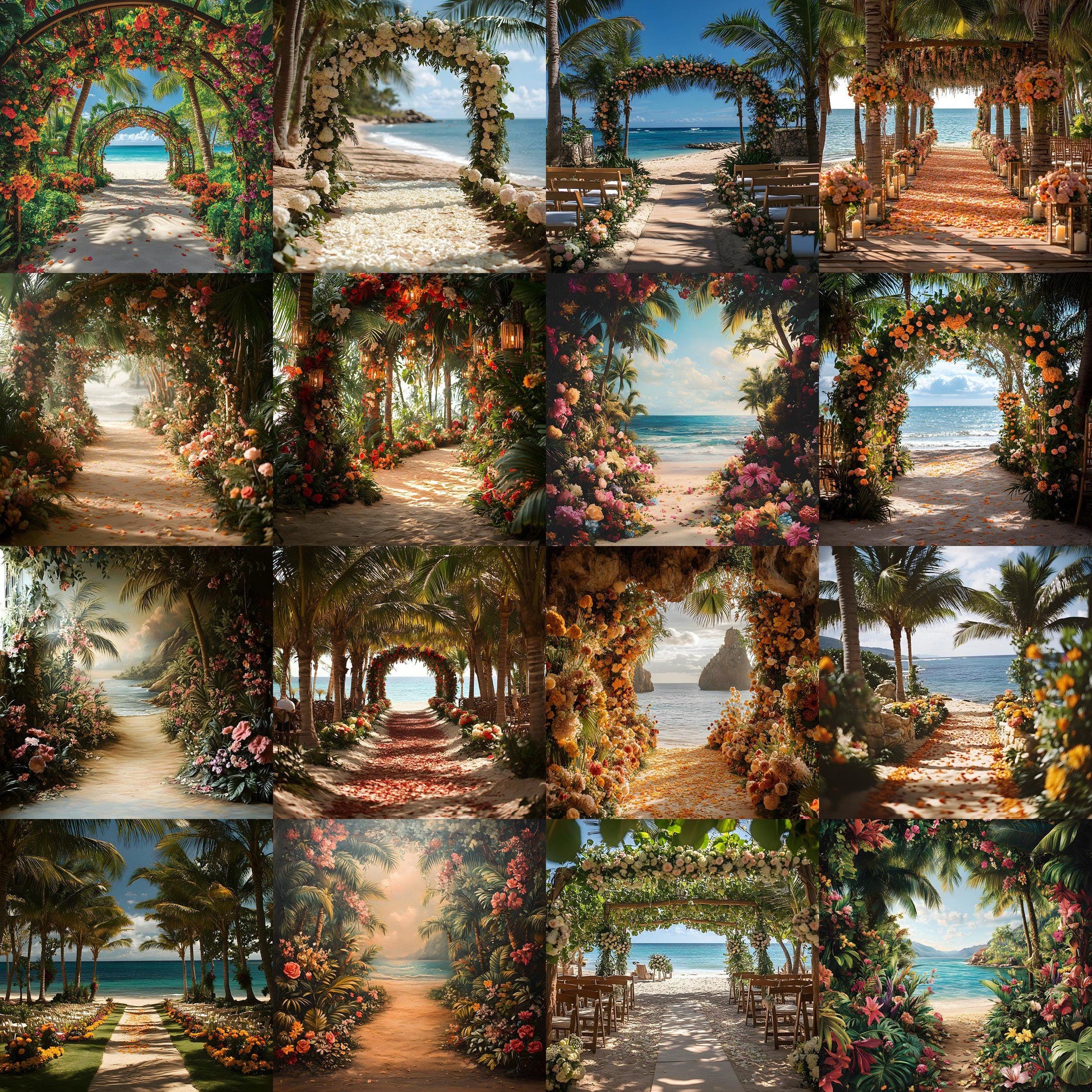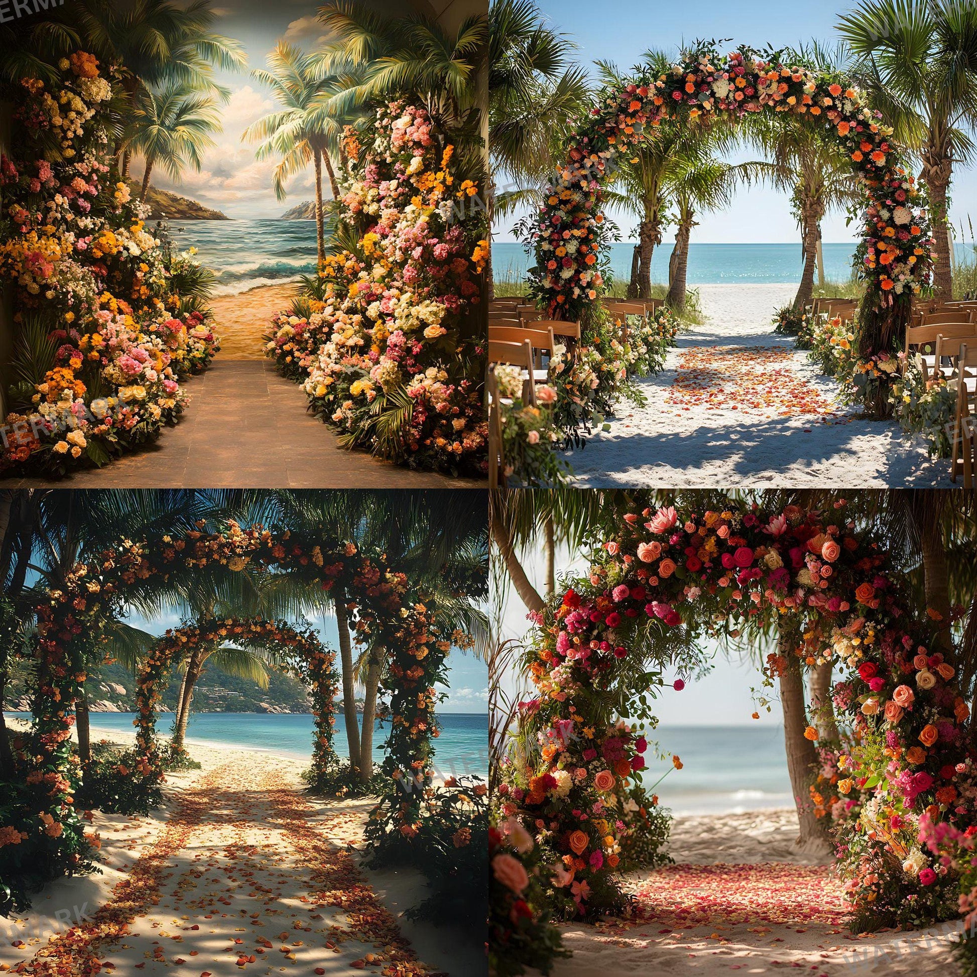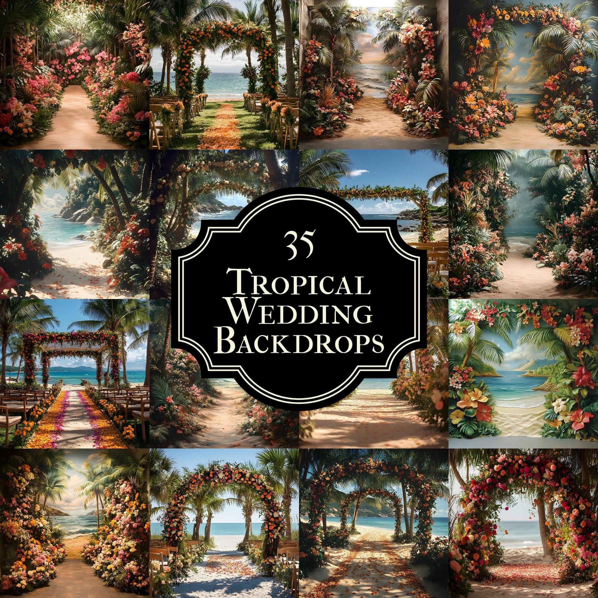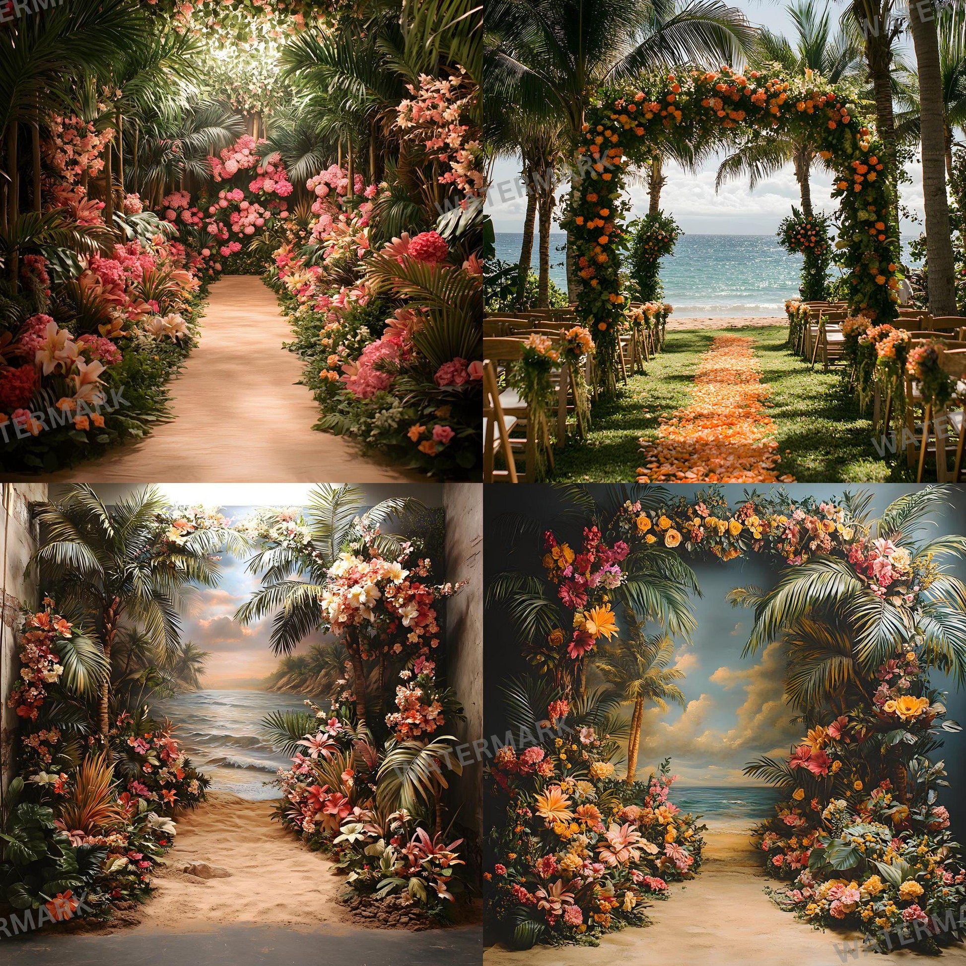Add elegance to your photos with this set digital backdrops. Perfect for maternity, portraits, and wedding photography. Instantly elevate your creative projects with these Tropical Wedding backgrounds.