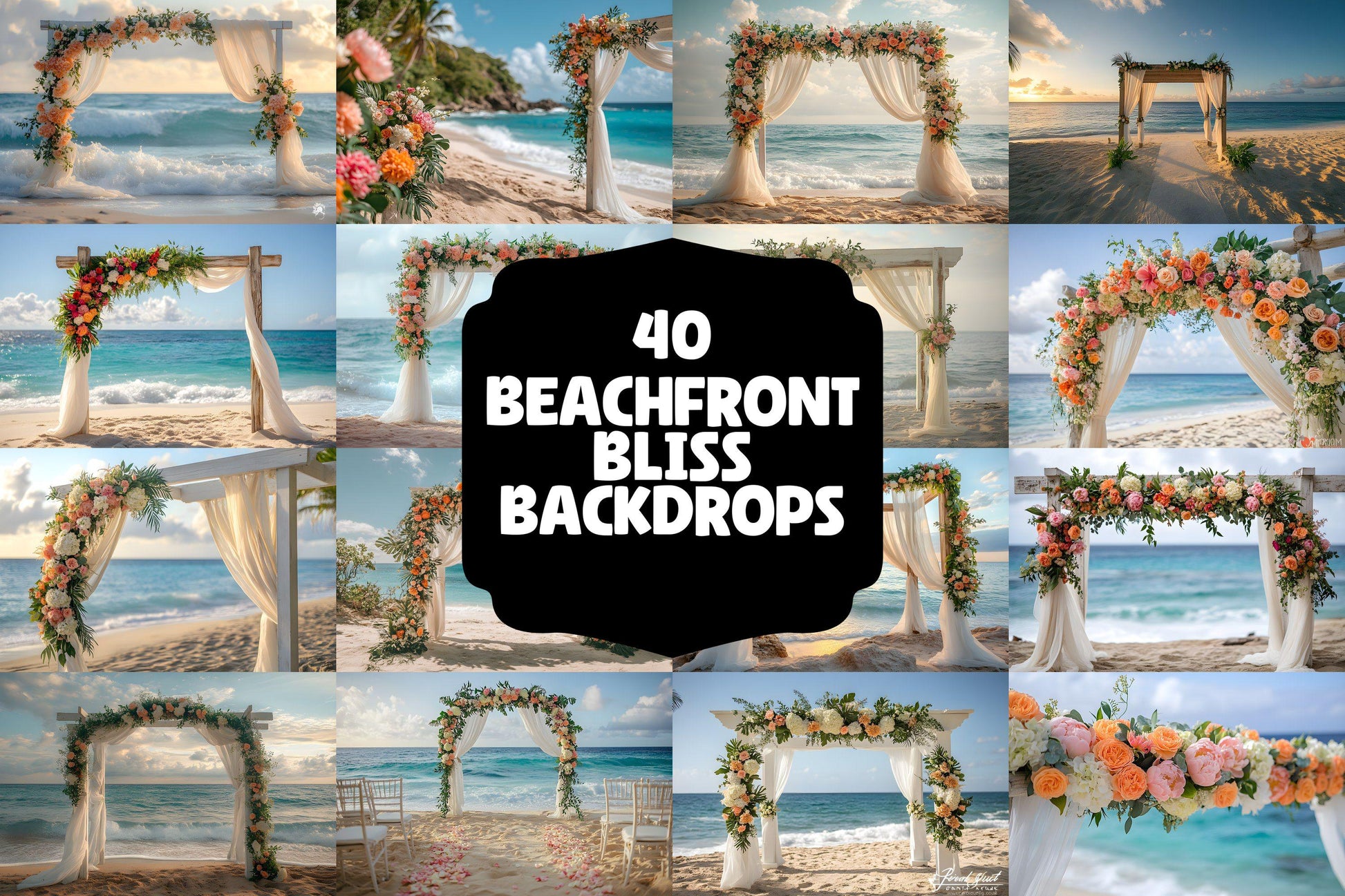 Beachfront Bliss Backdrops, Digital Tropical Wedding Background, Seaside Ocean Photo Booth Prop, Summer Coastal Photography Scene Assets