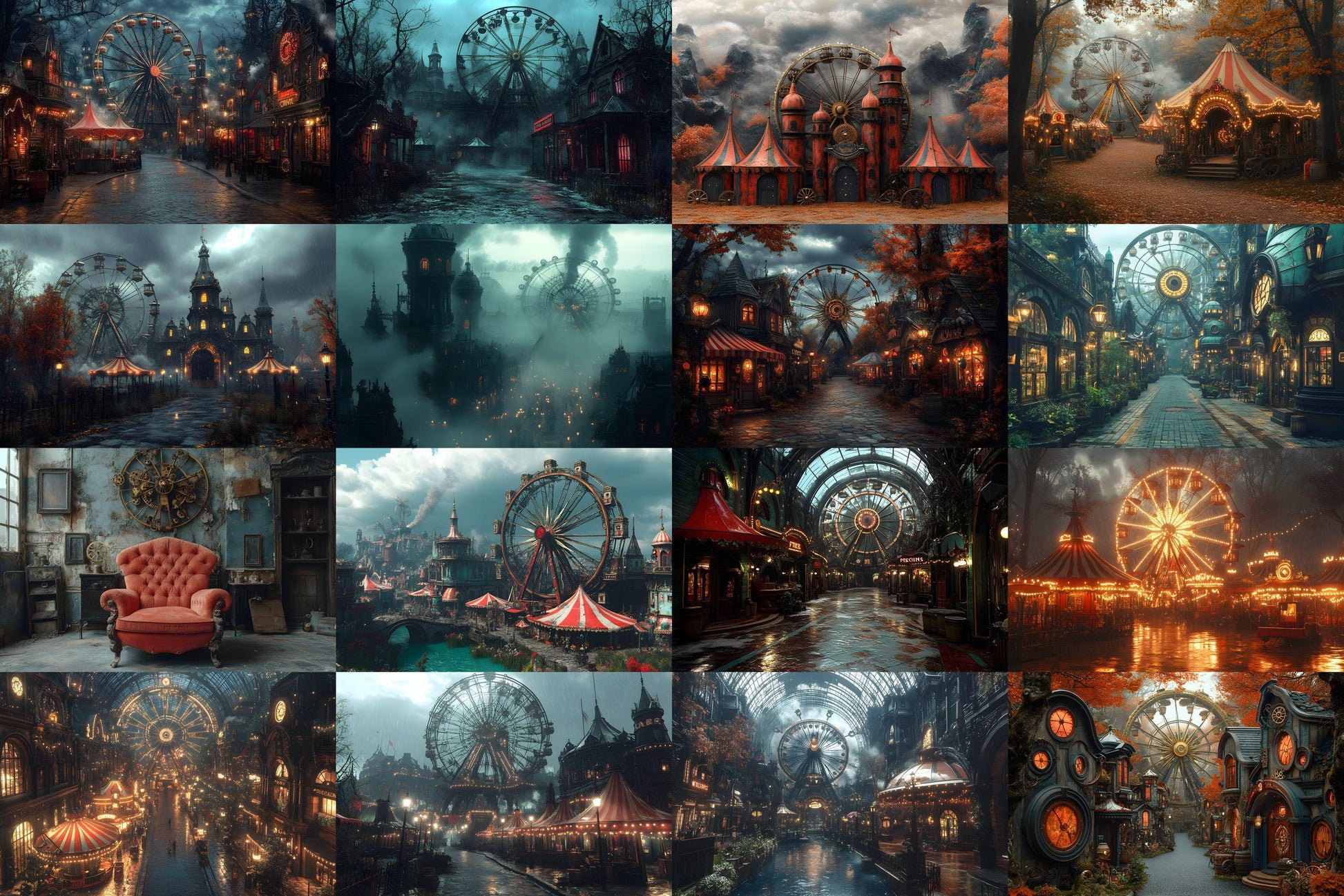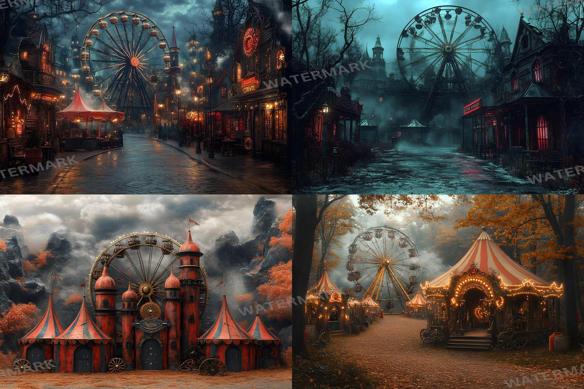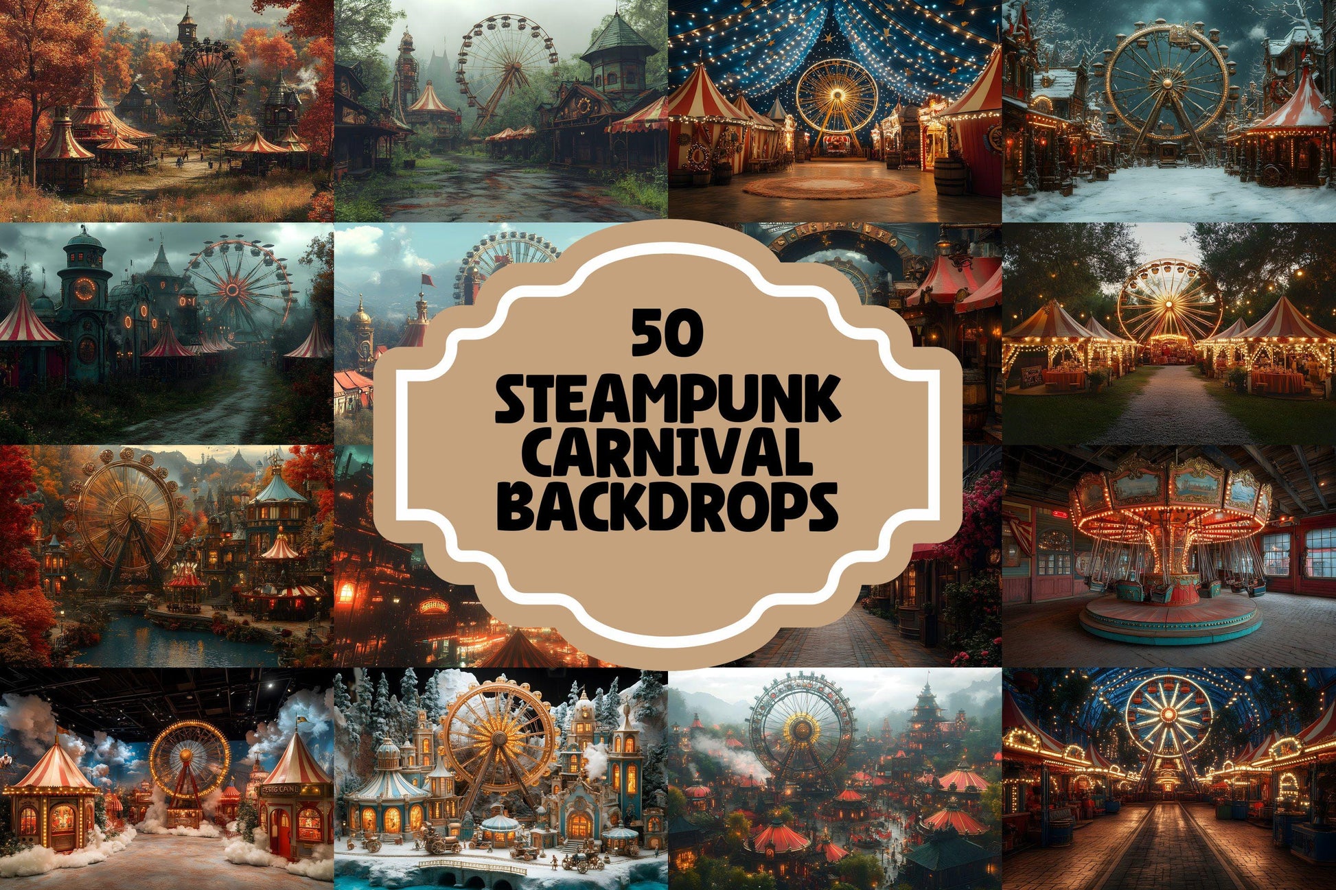 Steampunk Carnival Backdrops | Vintage Circus | Mechanical Fairground | Retro Fantasy | Digital Backgrounds