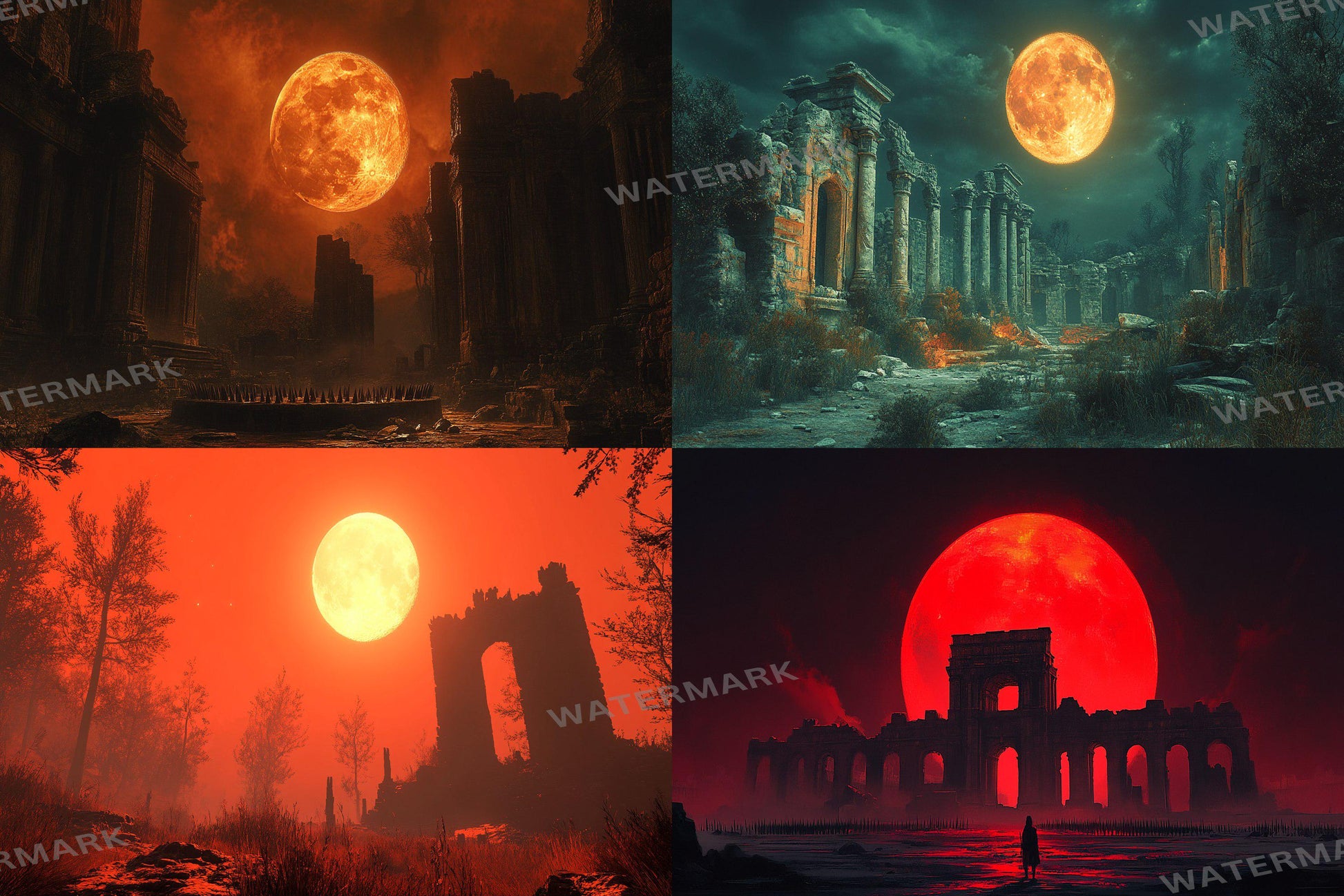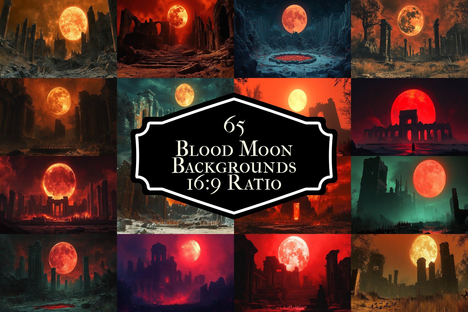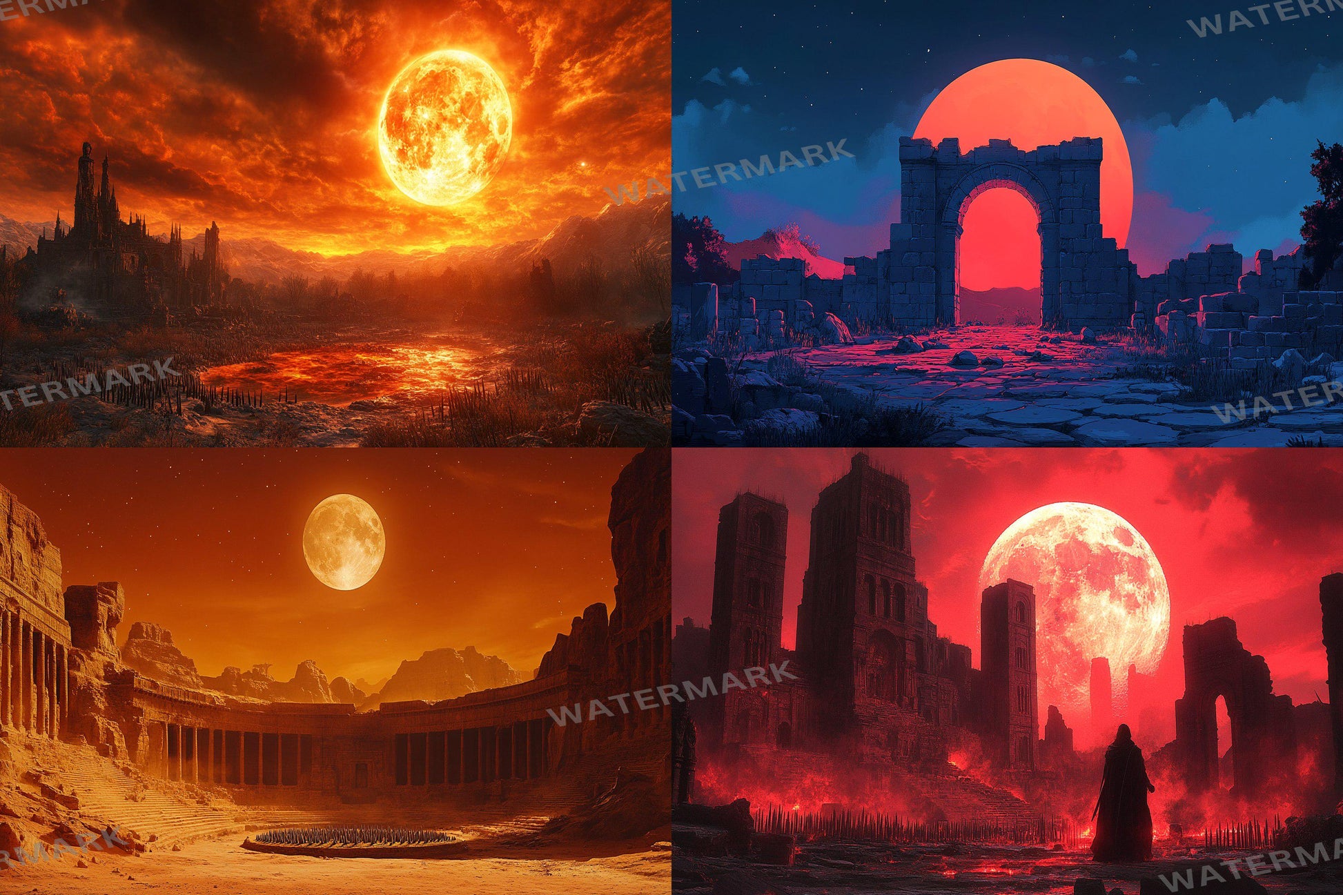 Blood Orange Moon streaming background in a 16:9 ratio, featuring a dark sky illuminated by a fiery orange moon. This dramatic and mystical scene is perfect for TV wallpapers, digital backdrops, and streaming backgrounds, adding a striking, atmospheric touch to any project.