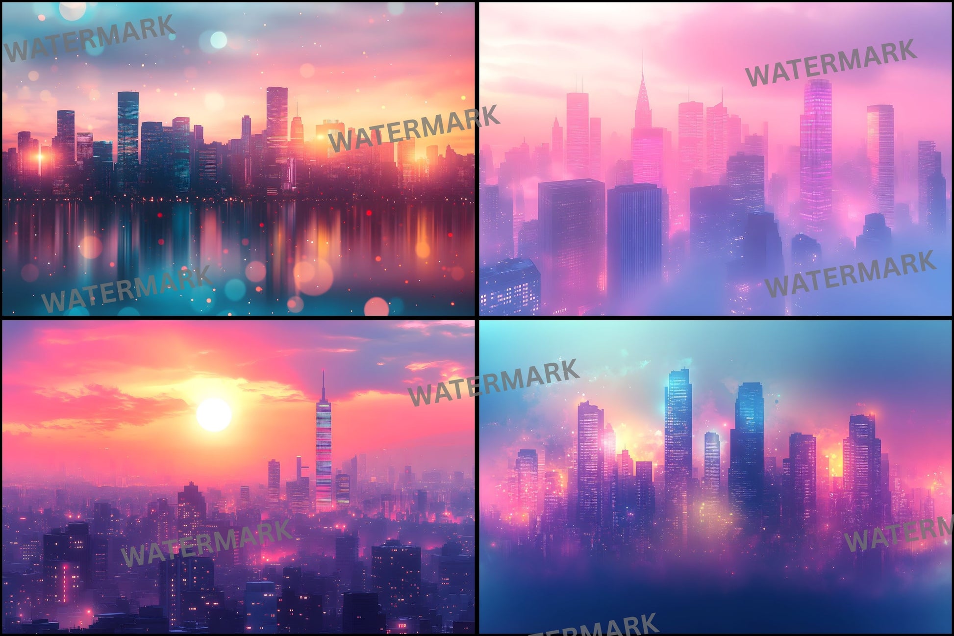 Abstract Skyline Digital Backdrop, Cityscape Photography Background for Composites, Modern Urban Photo Overlay, High-Resolution Image for Photographers
