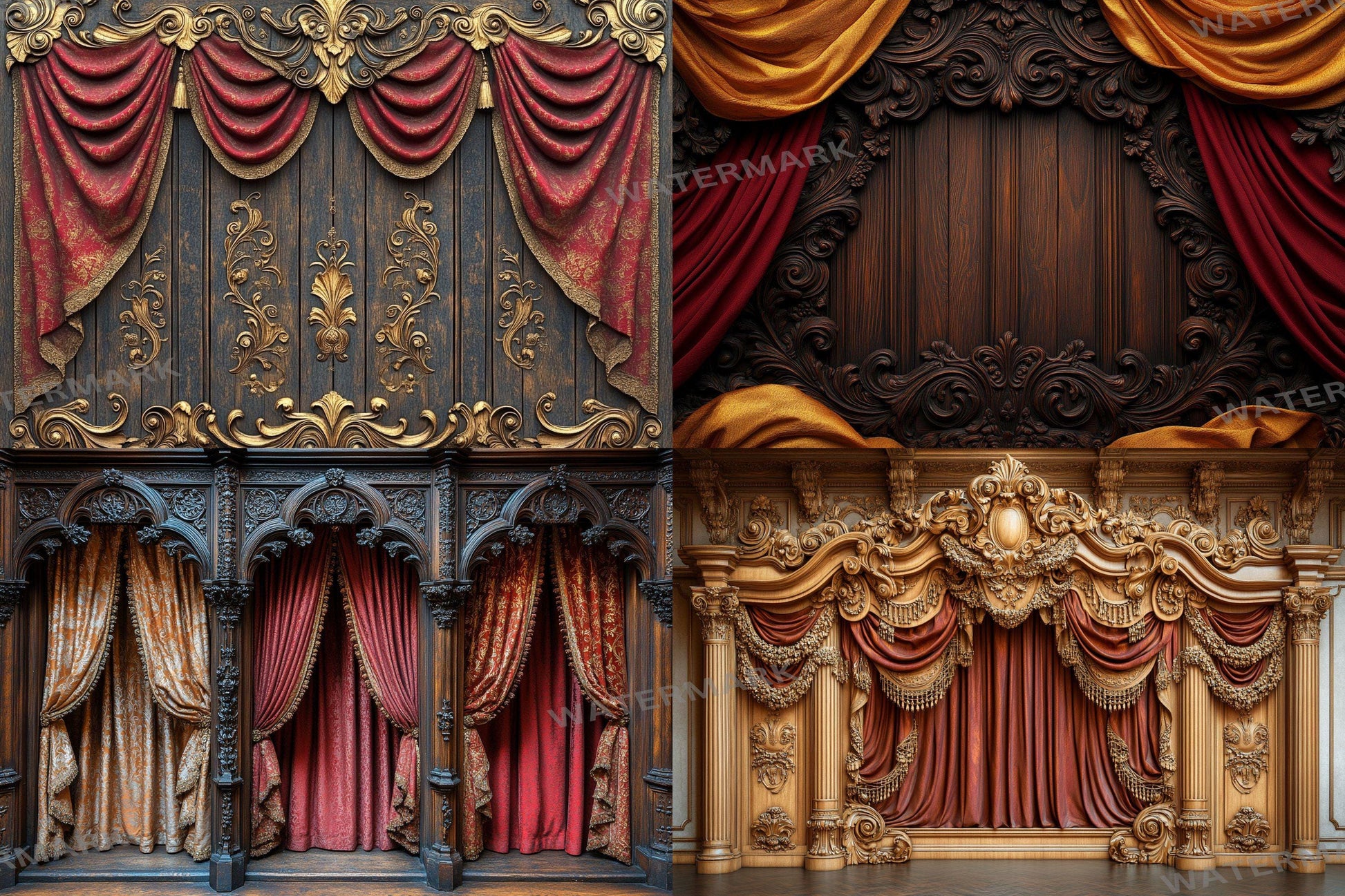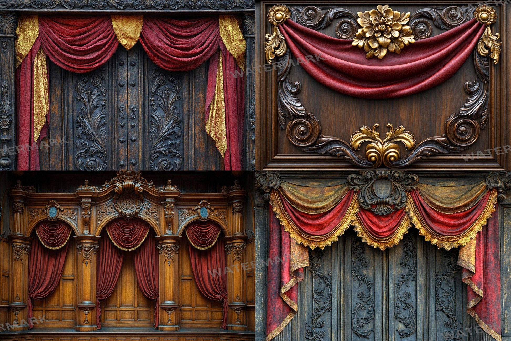 Antique Carved Panels Digital Backdrops - 3High-Resolution PNGs 00x00px for Photography - Commercial Use Allowed