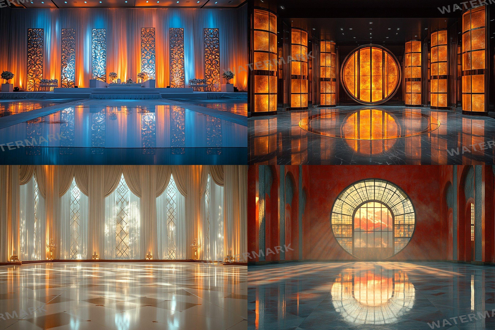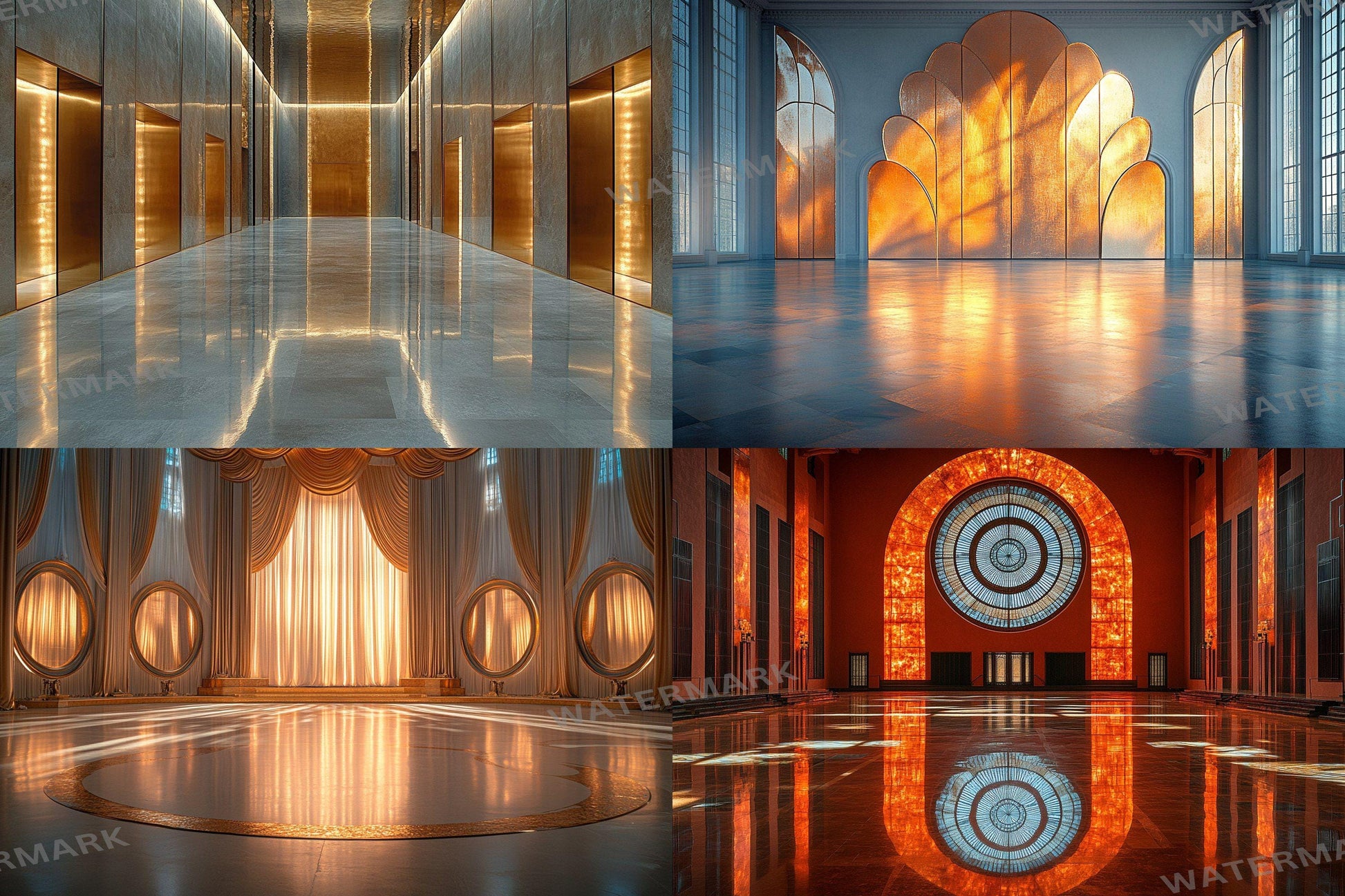 Art Deco Mirror Backdrop: 4PNGs for Vintage Glamour Photography, 19s Style Props, Elegant Reflection Digital Backdrops