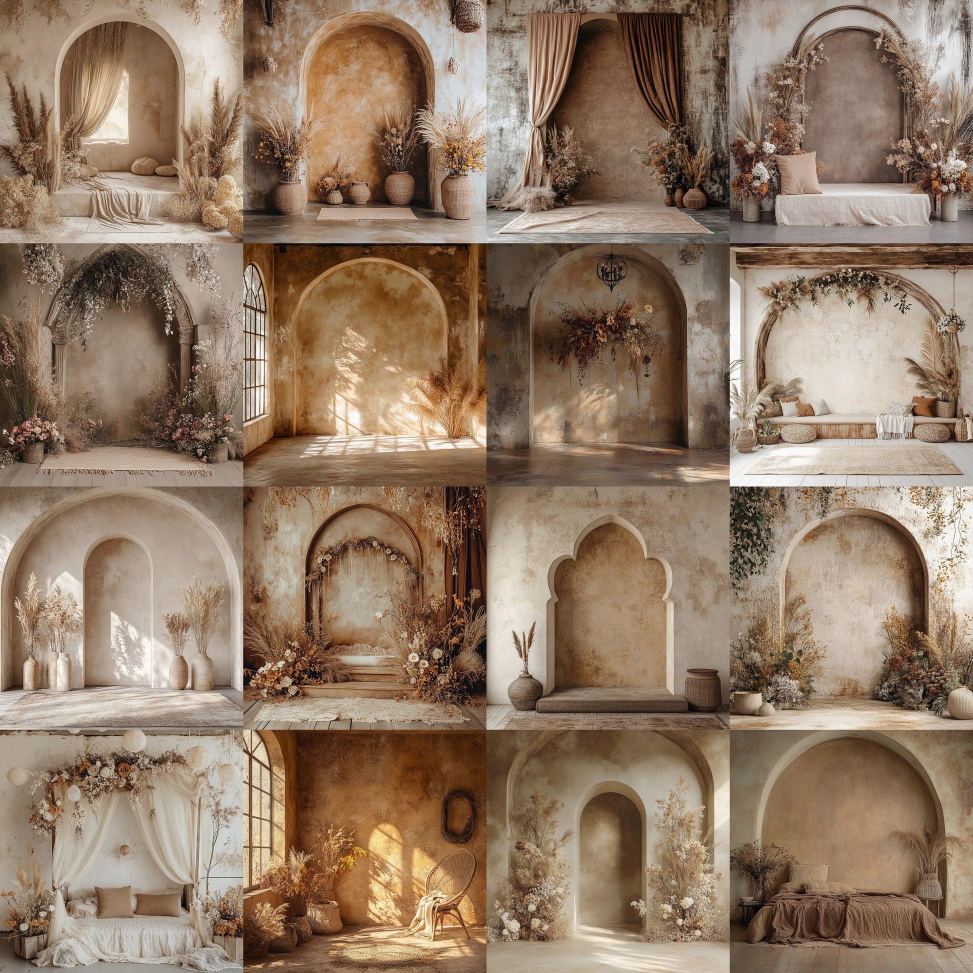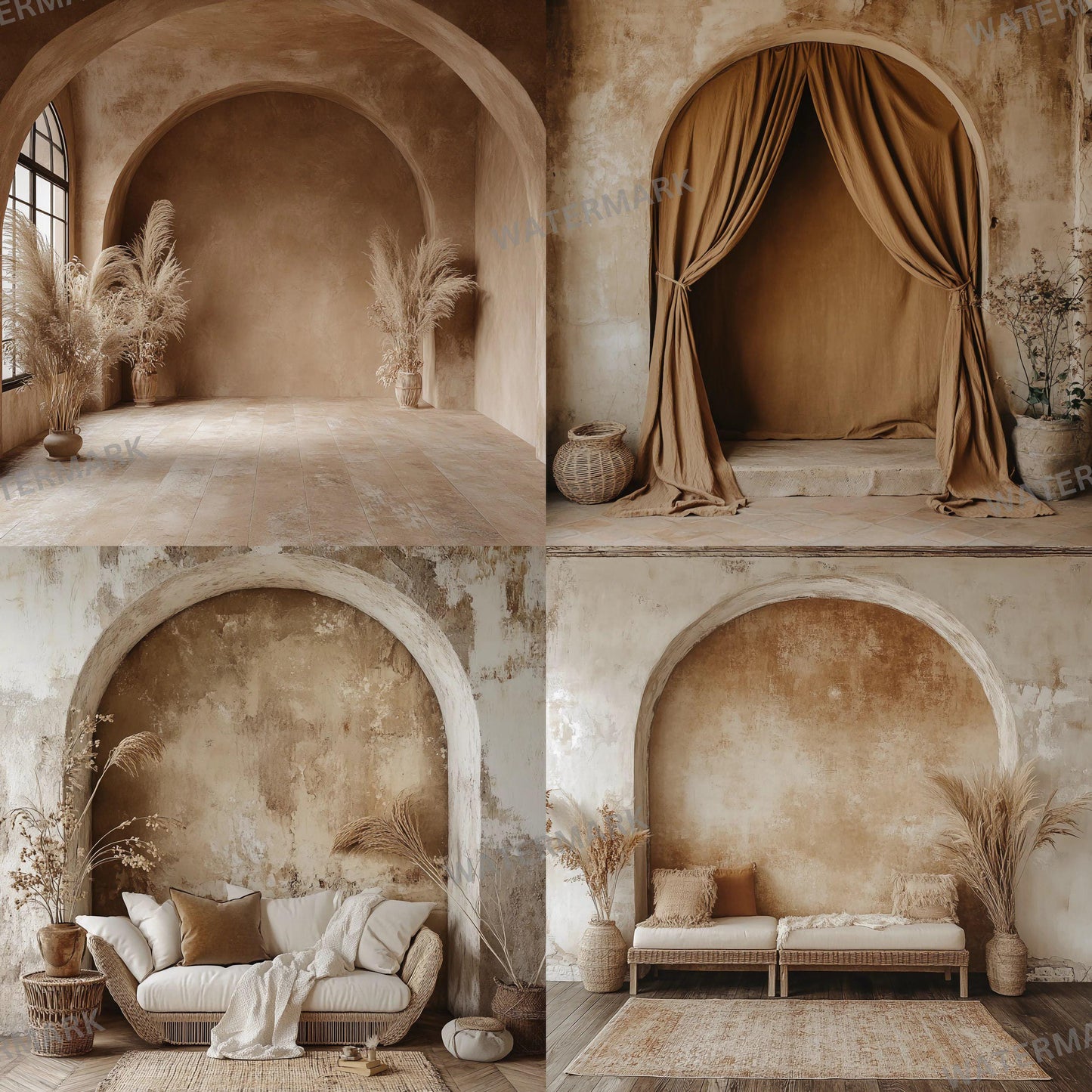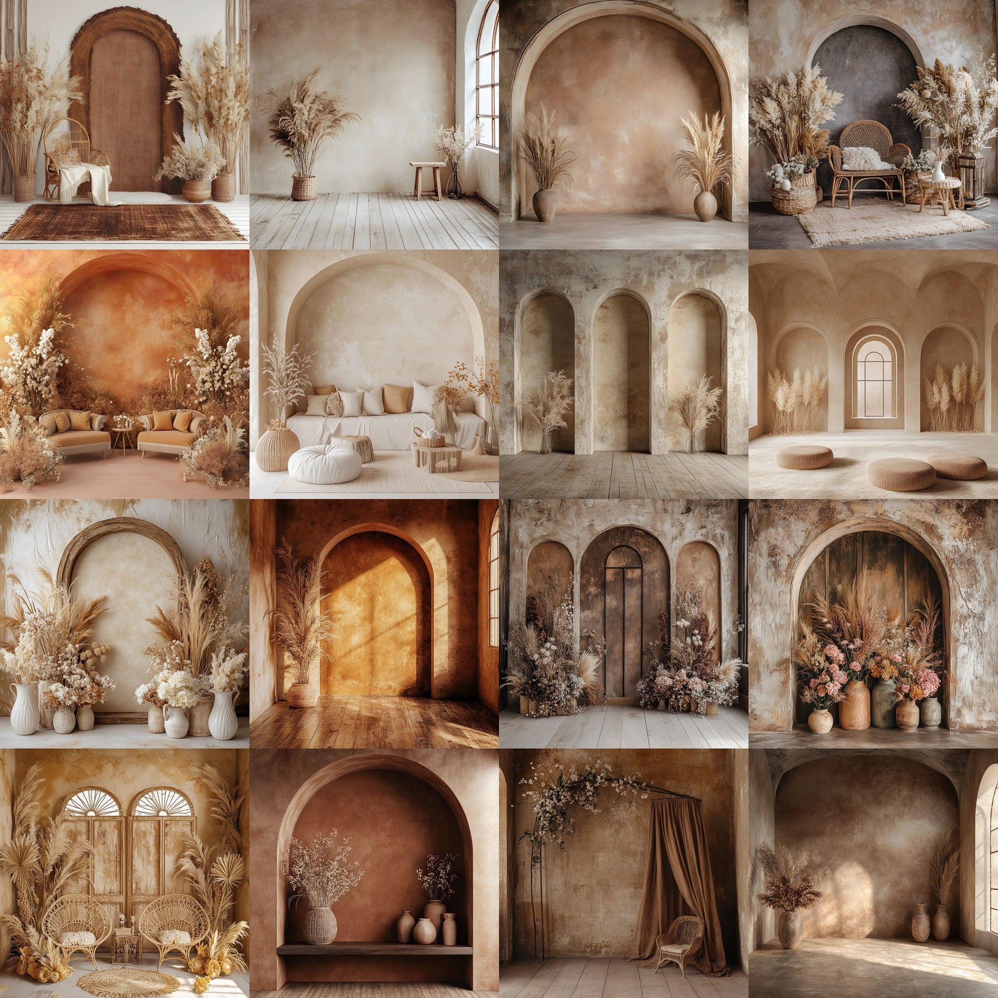 Create elegant and timeless portraits with these boho maternity digital backdrops. Featuring minimal arches, fine art textures, and earthy brown tones, these backdrops are perfect for maternity photoshoots, wedding studio settings, or artistic overlays. Add a touch of bohemian charm and warmth to your photography with these versatile digital backdrops.