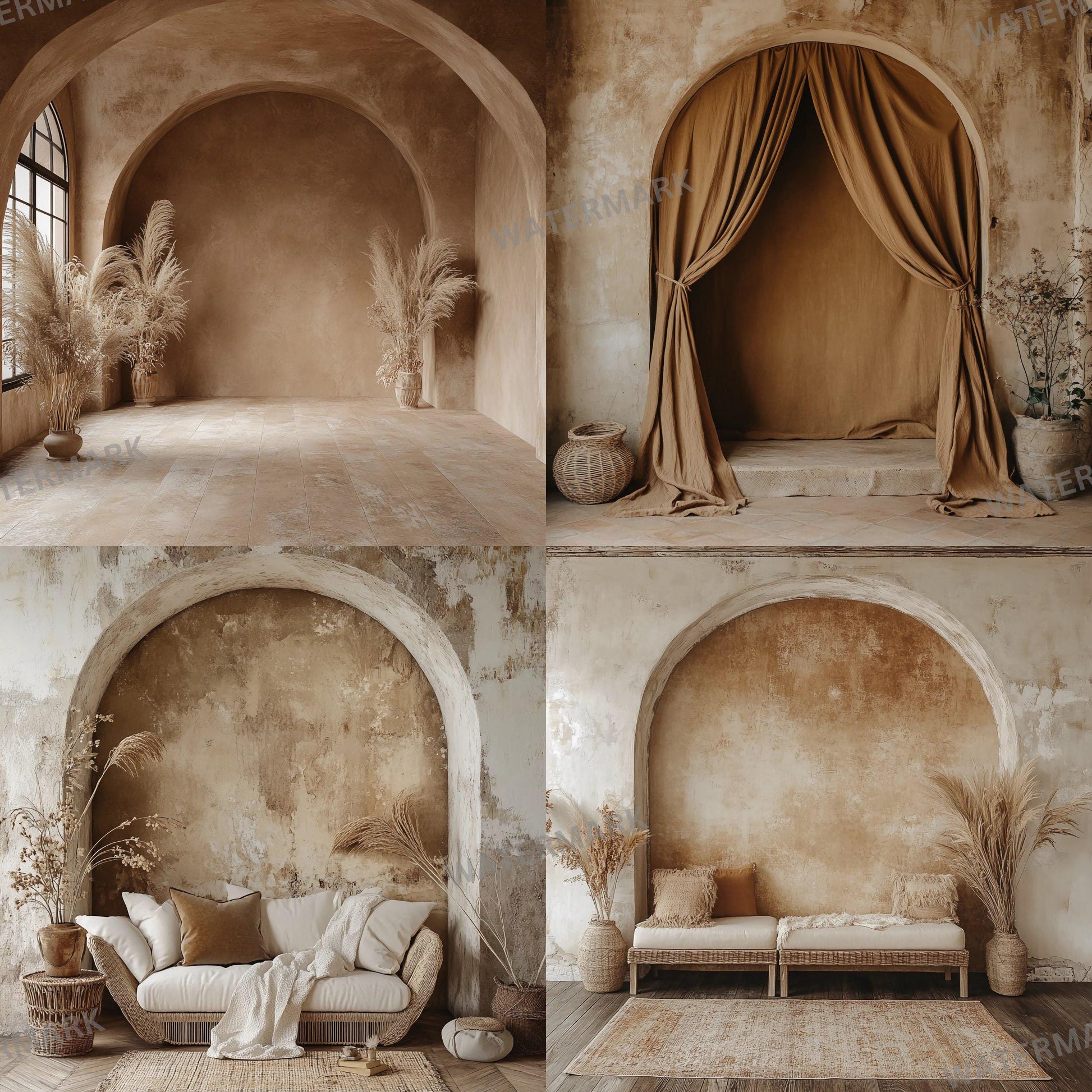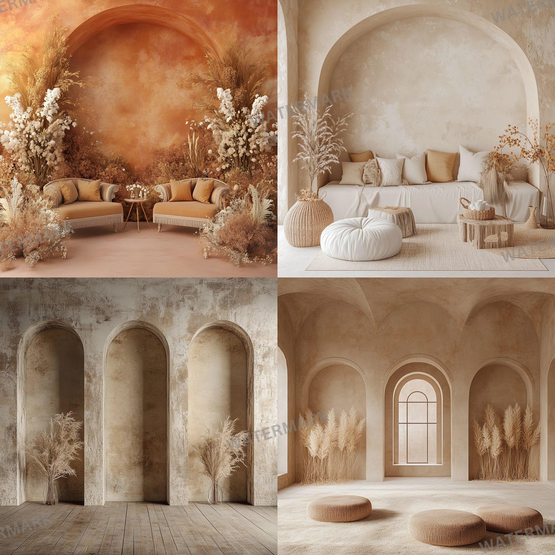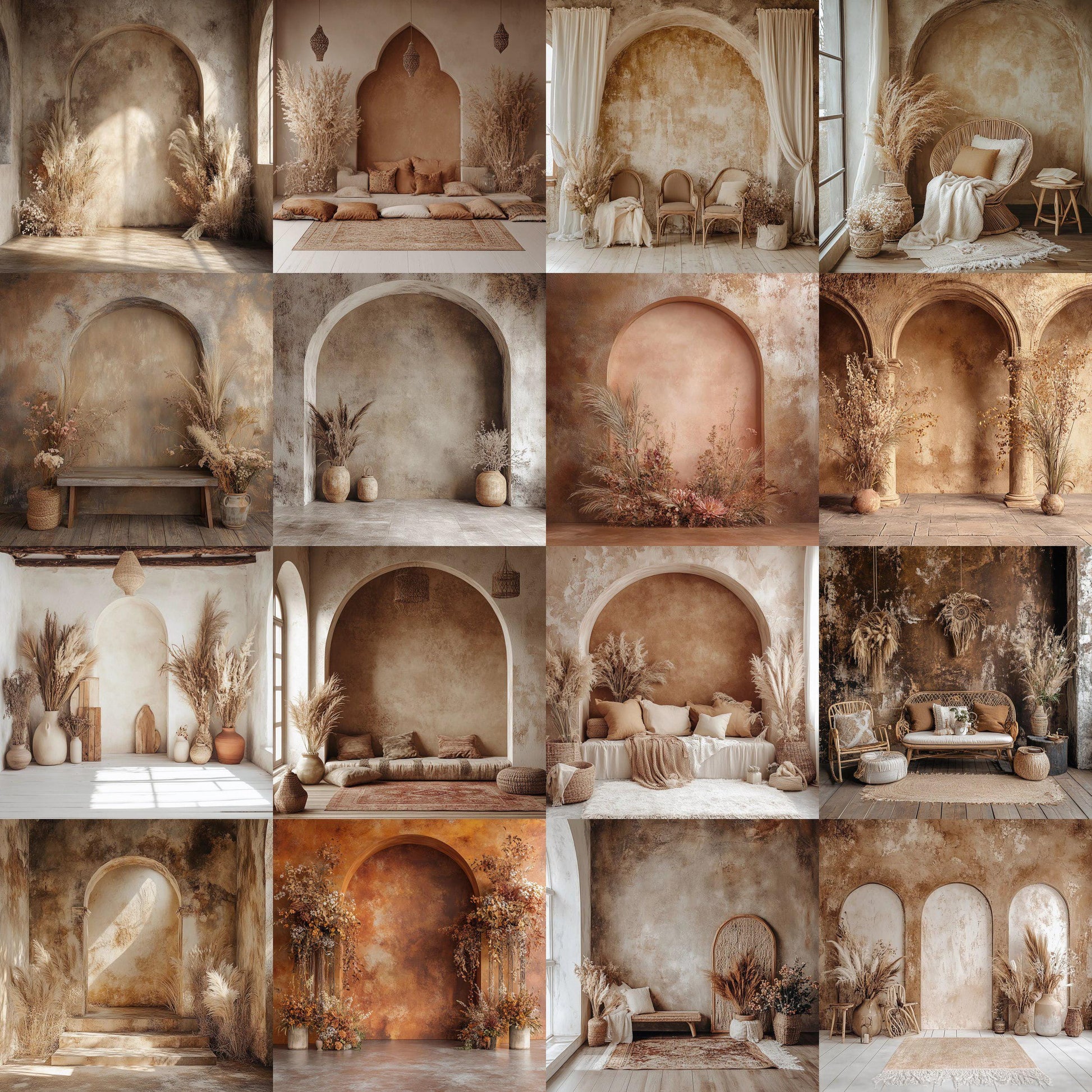 Create elegant and timeless portraits with these boho maternity digital backdrops. Featuring minimal arches, fine art textures, and earthy brown tones, these backdrops are perfect for maternity photoshoots, wedding studio settings, or artistic overlays. Add a touch of bohemian charm and warmth to your photography with these versatile digital backdrops.