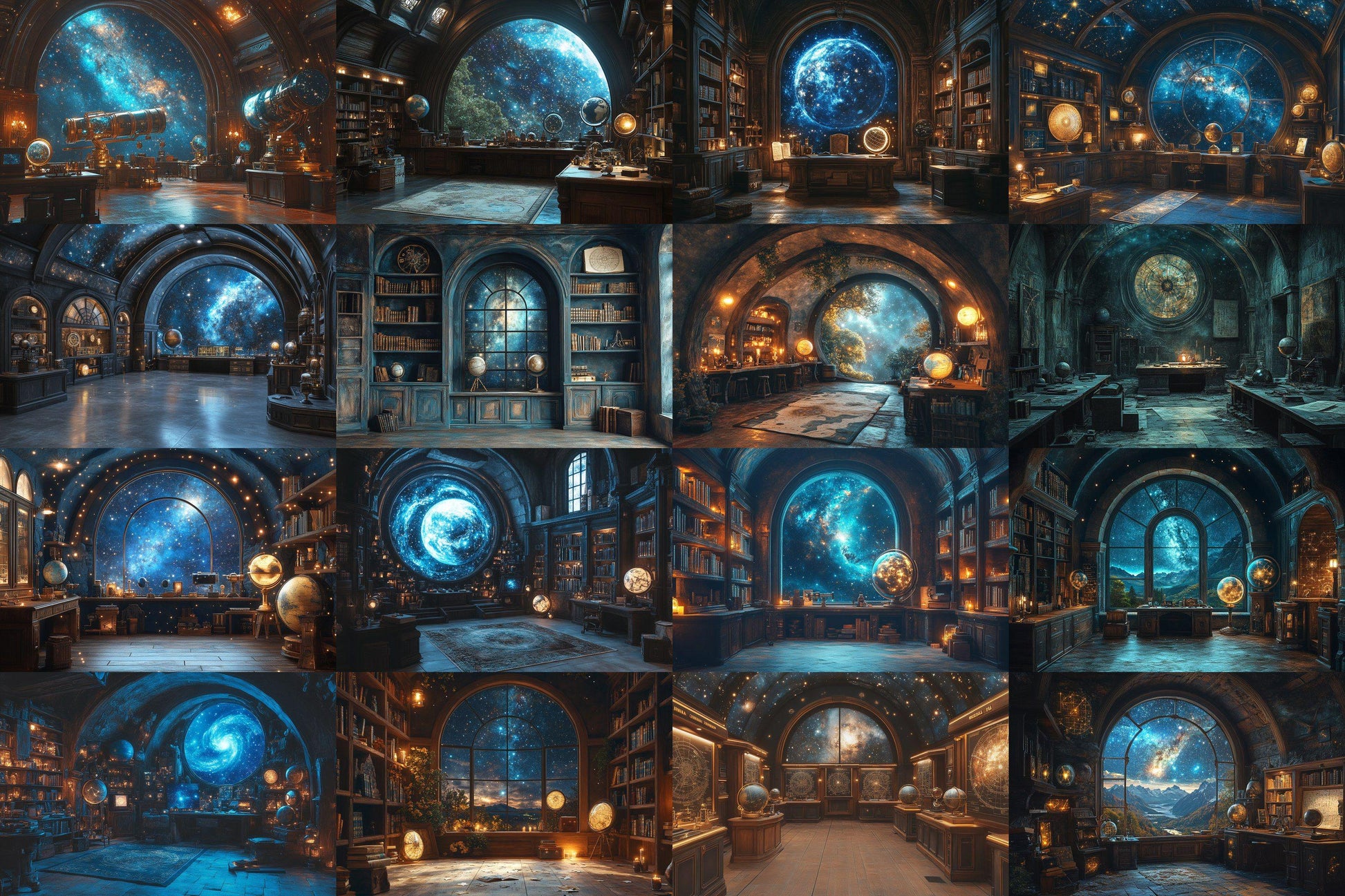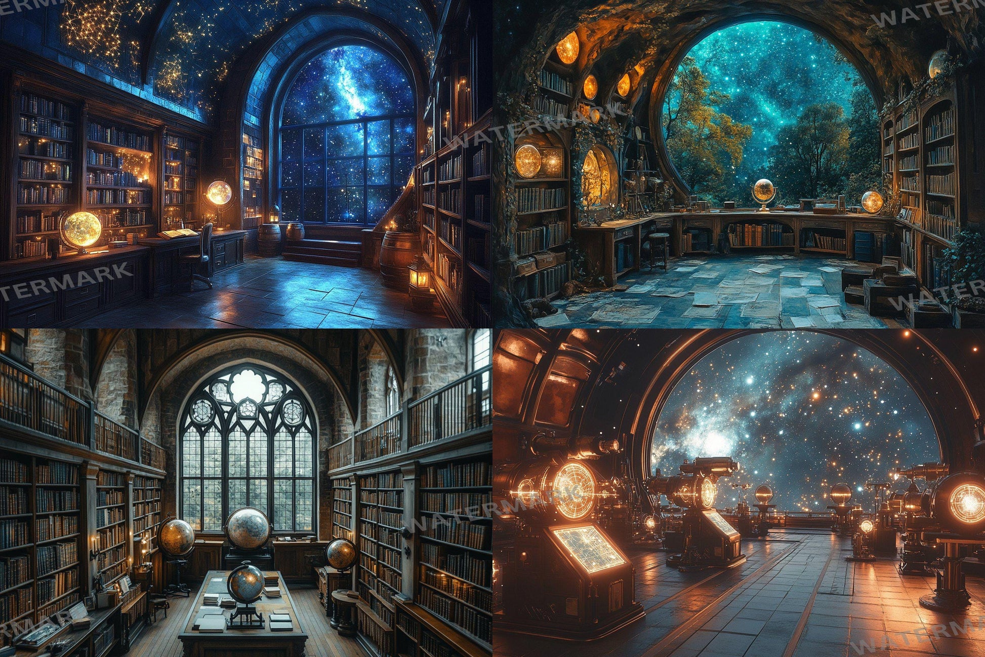 Step into a realm of celestial wonder with these captivating digital backdrops featuring a witch's observatory under a magical night sky. Perfect for fantasy photography, creating mystical scenes, and adding a touch of enchantment to your projects.