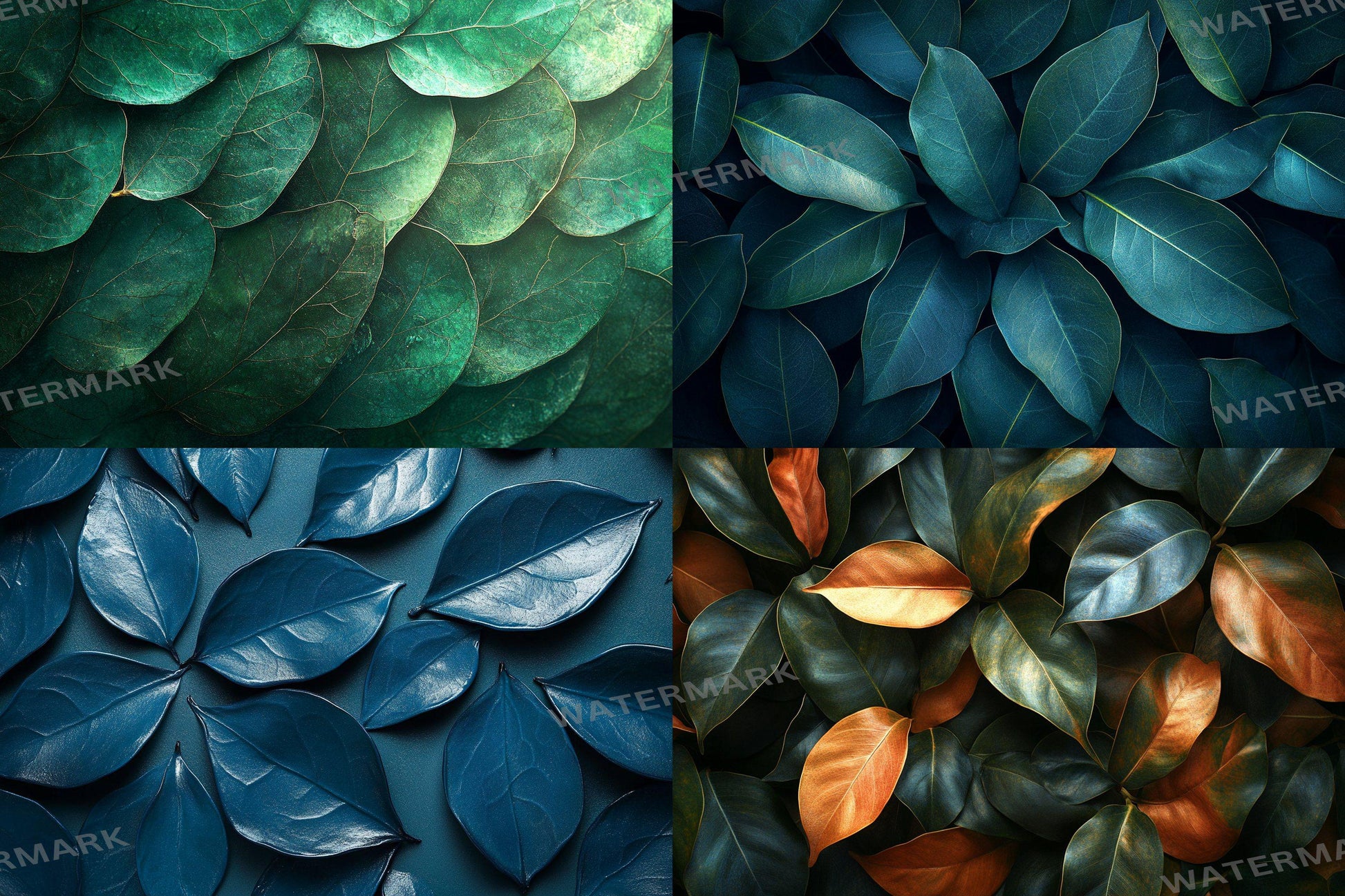 Ficus Leaves Digital Backdrops: 4Green Botanical Nature Textures for Photography & Tropical Art - Leafy Green Textured Backgrounds