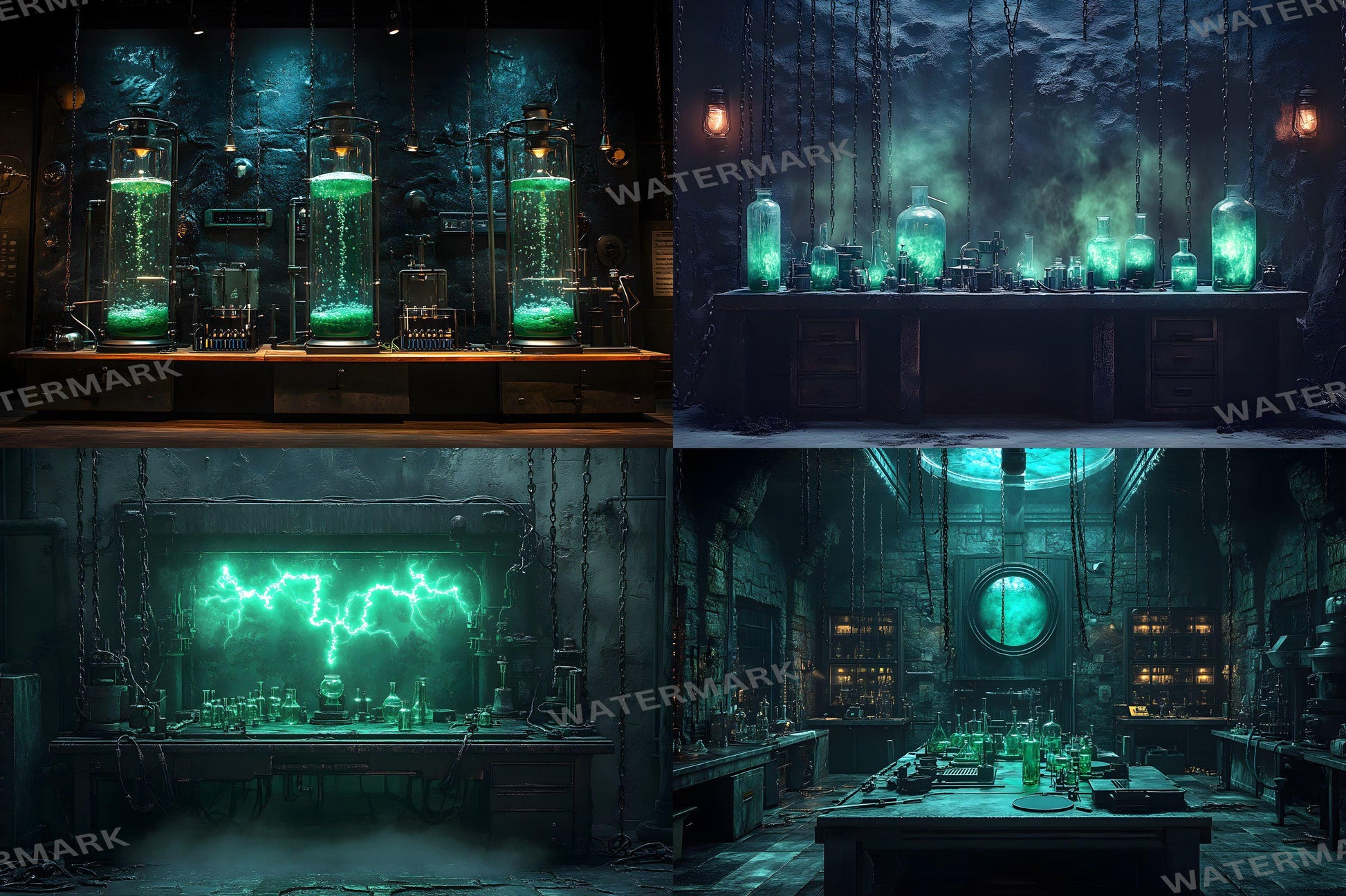 Mad Scientist Lab Backdrop, Dark Science Laboratory, Gothic Alchemy Room, Spooky Halloween Decor, Sci-Fi, Steampunk, Haunted Lab Backdrop