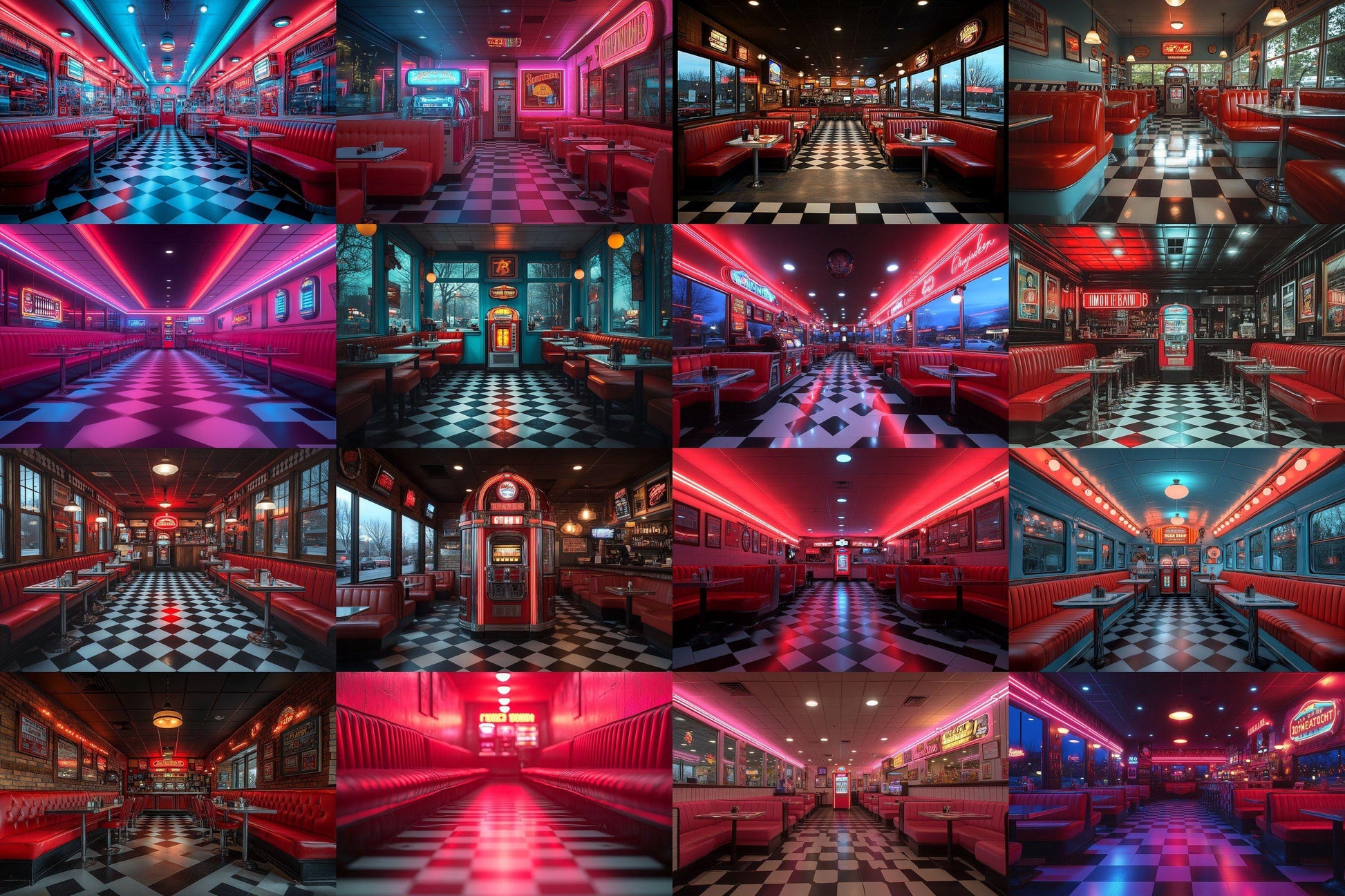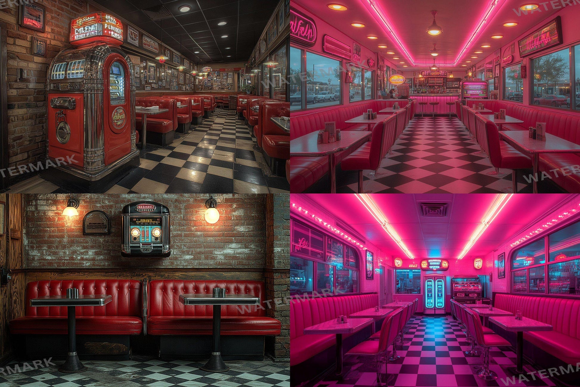 Retro Diner Backdrop: 3PNGs for Vintage Photo Editing, s Style Photography Props, Classic American Diner Digital Backdrops