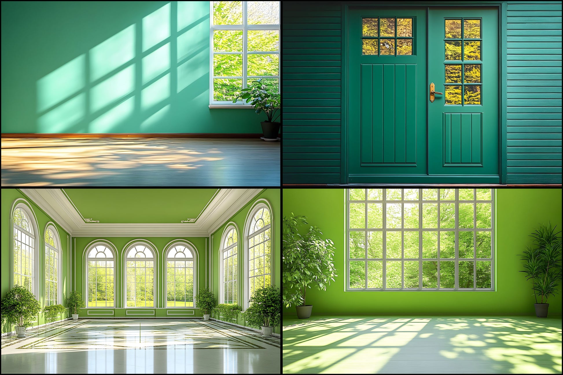 Royal Green Interior Backdrop Set, Photography Backgrounds, Digital Download for Photographers, Elegant Home Decor Photo Overlays