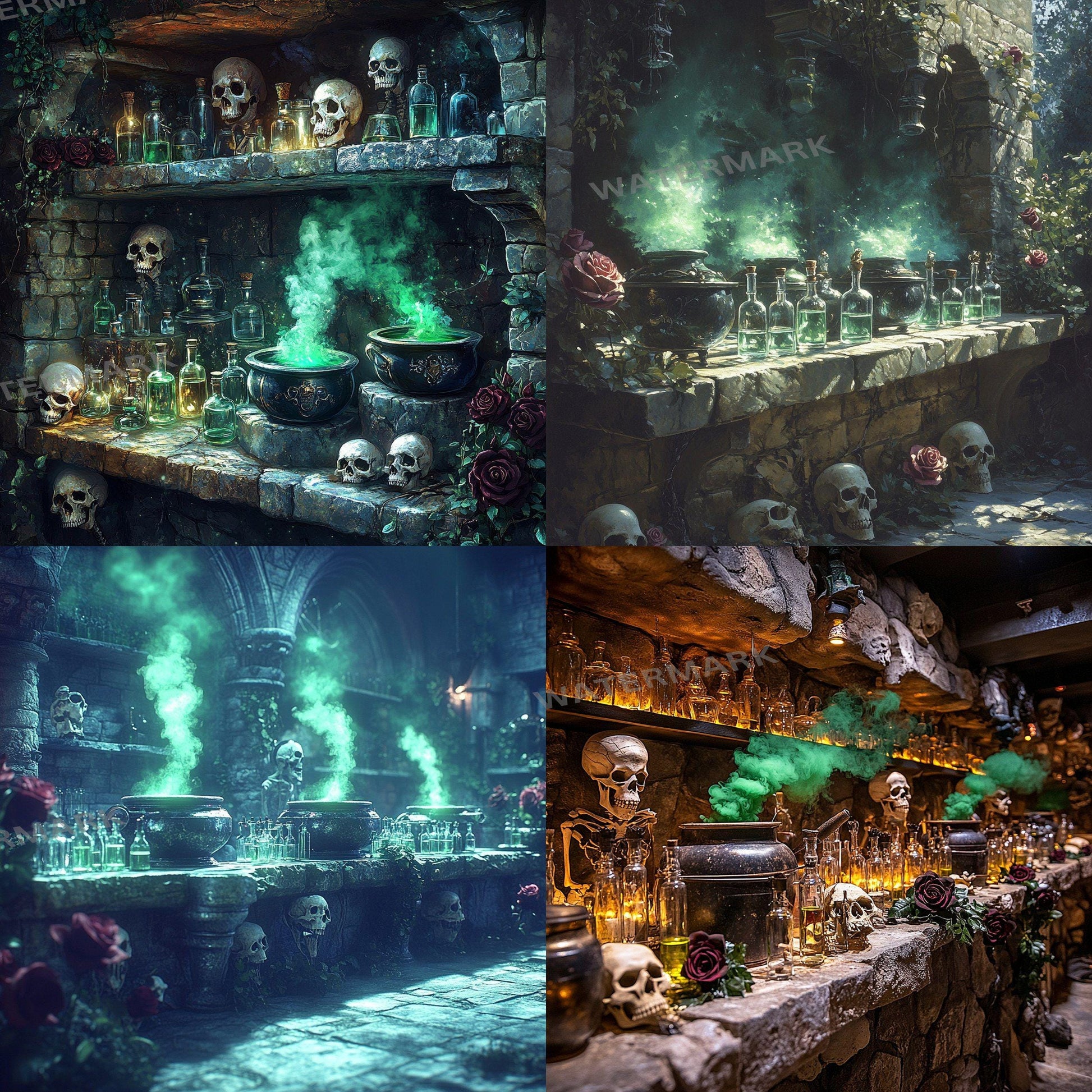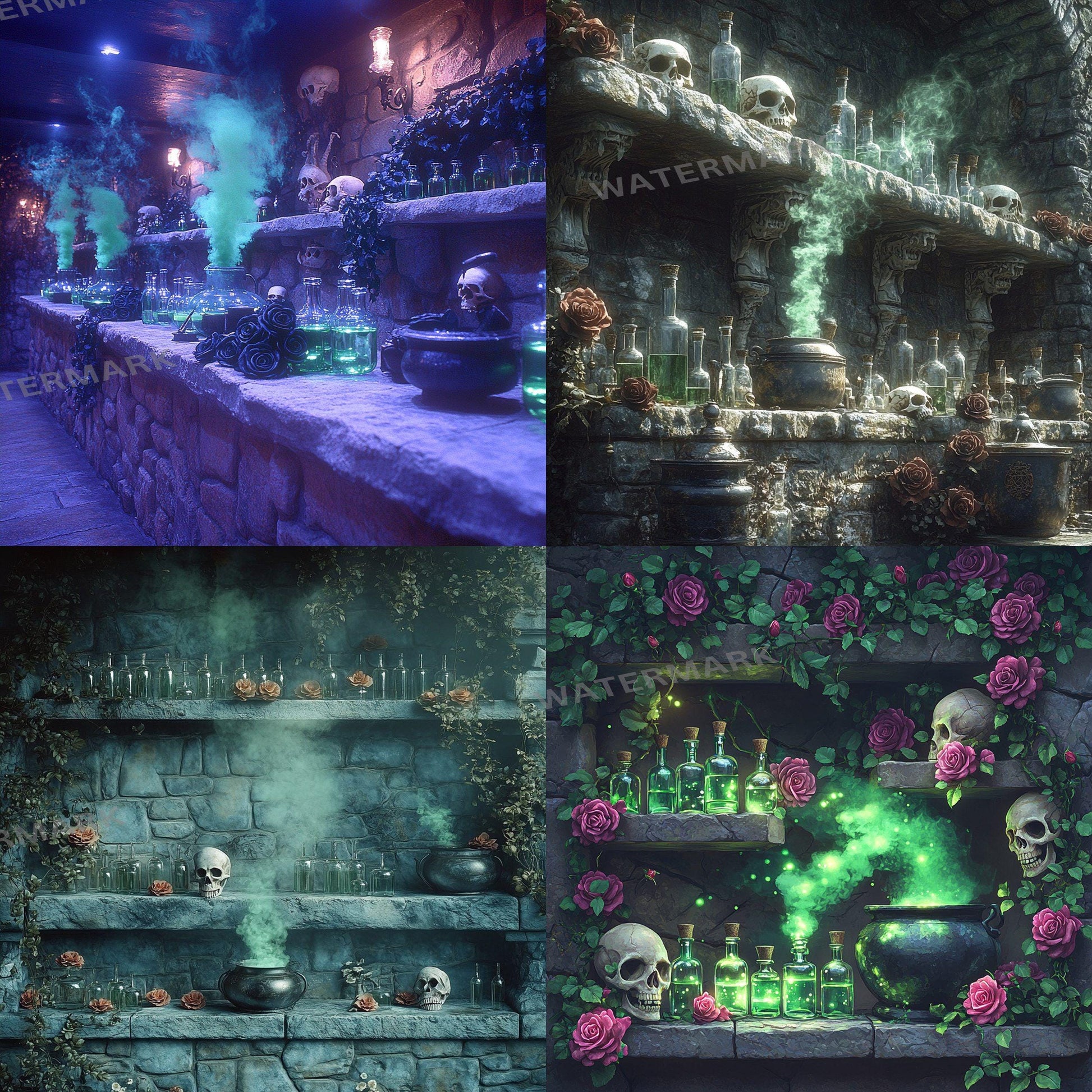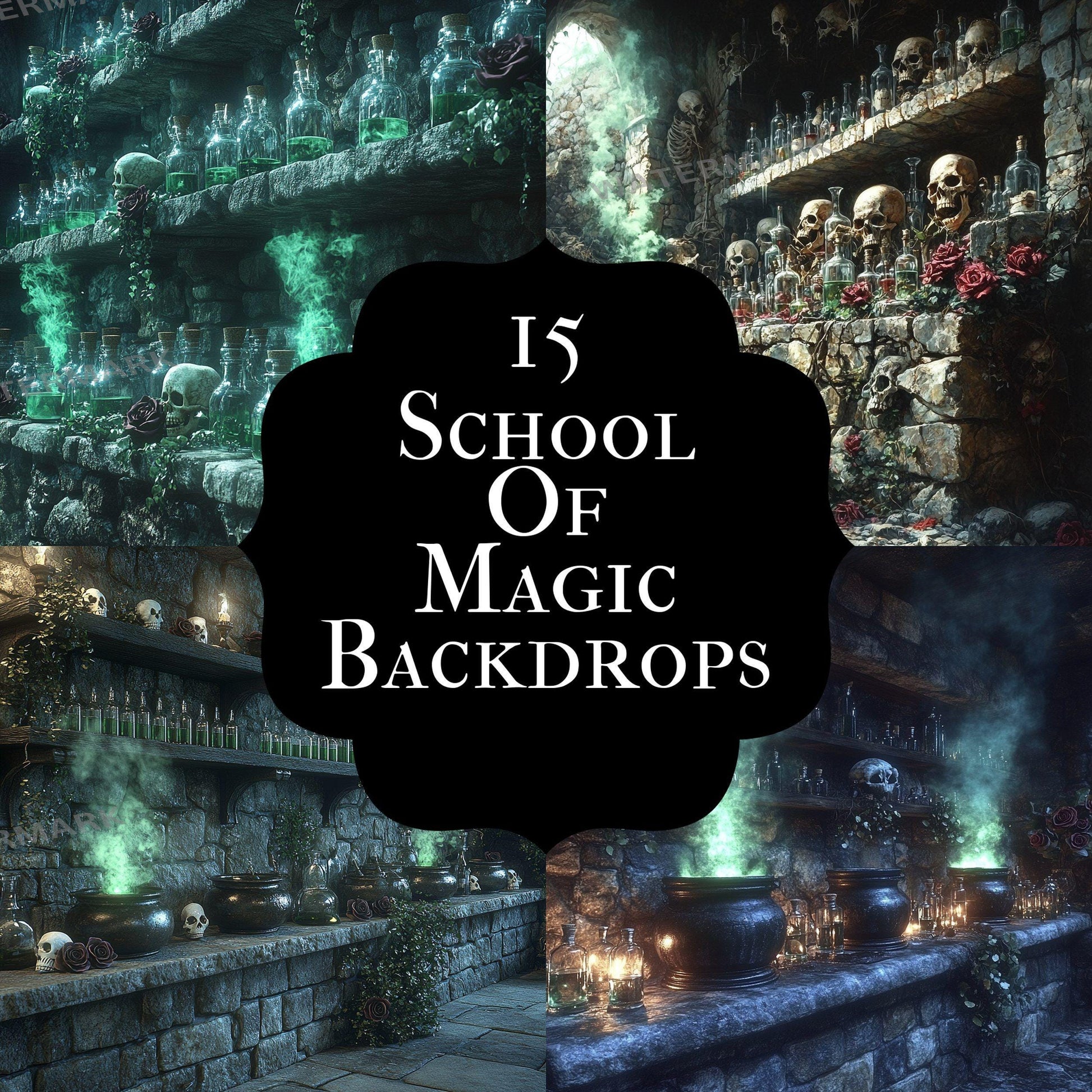 School of magic digital backdrops, fantasy wizard overlays, magical PNG backgrounds for photography, cosplay portraits, green screen use