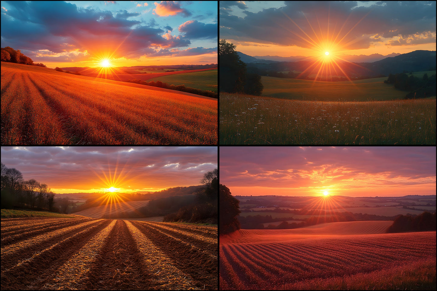 Sunset Pastoral Photography Backdrop, Warm Light Digital Background, Photo Prop, Golden Hour Scene, Dreamy Printable Image Set