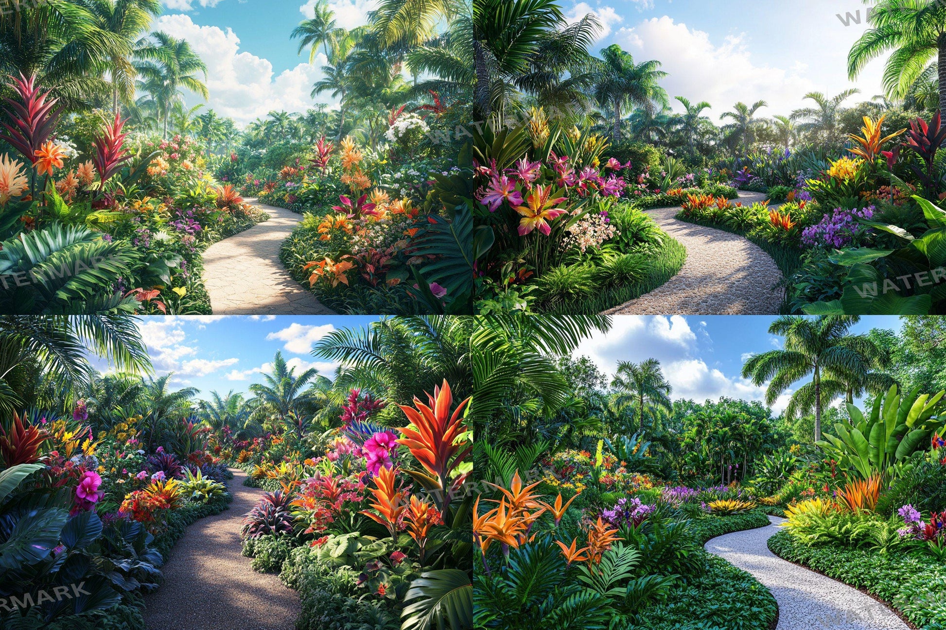 Tropical Bloom Backdrop: 5PNGs for Gorgeous Photography, Lush Floral Textures, Colorful Jungle Digital Backdrops - Overlays