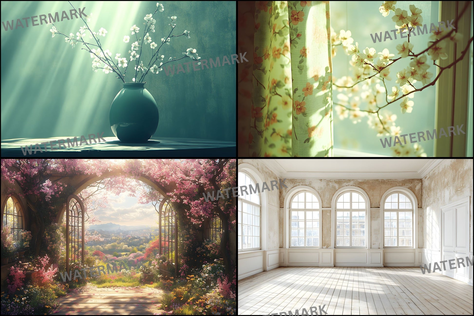Vintage Sunlit Room Digital Backdrop, Wallpaper Backgrounds for Photography, High-Resolution Images, Photo Studio Prop