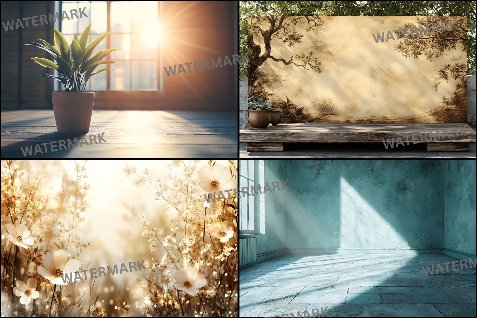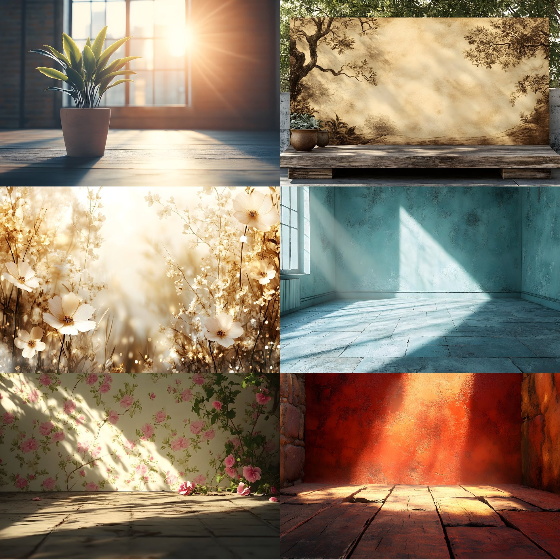 Vintage Sunlit Room Digital Backdrop, Wallpaper Backgrounds, Photography, Dreamy Photo Booth, High-Res Images