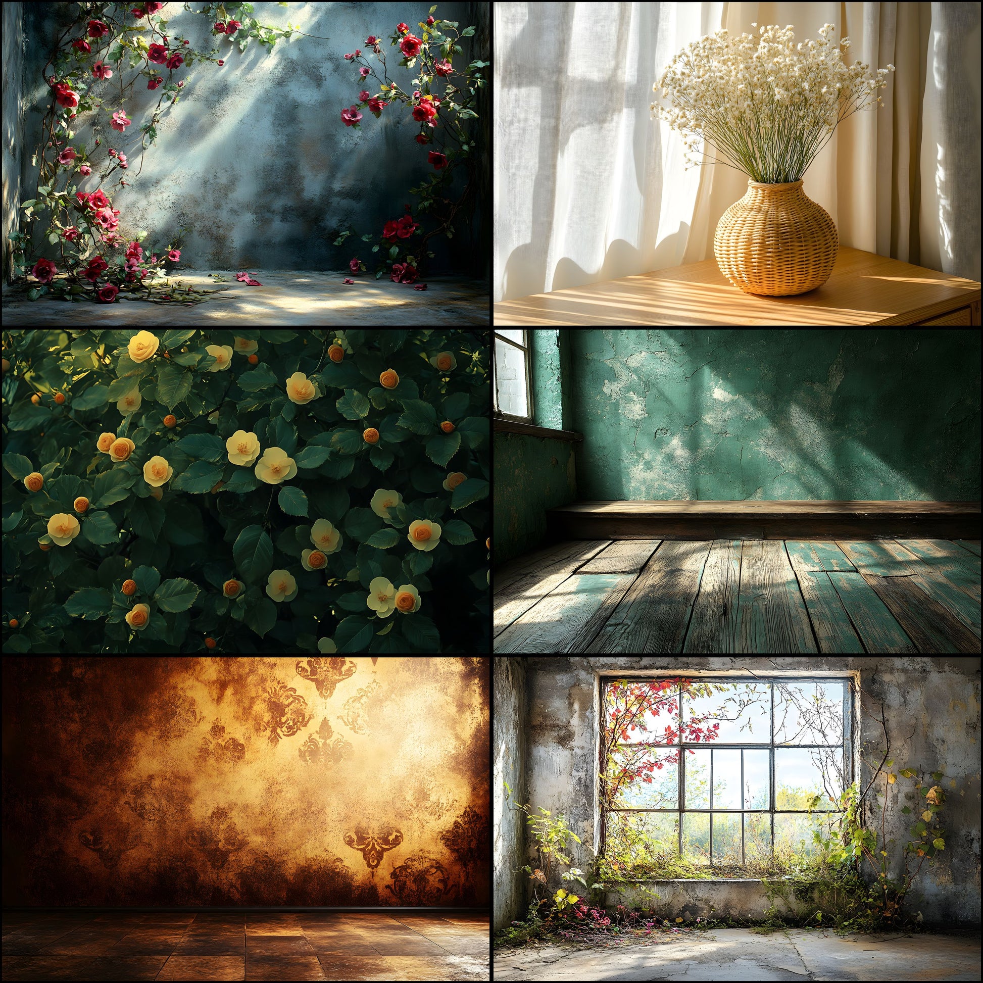 Vintage Sunlit Room Digital Backdrop, Wallpaper Backgrounds, Photography, Dreamy Photo Booth, High-Res Images