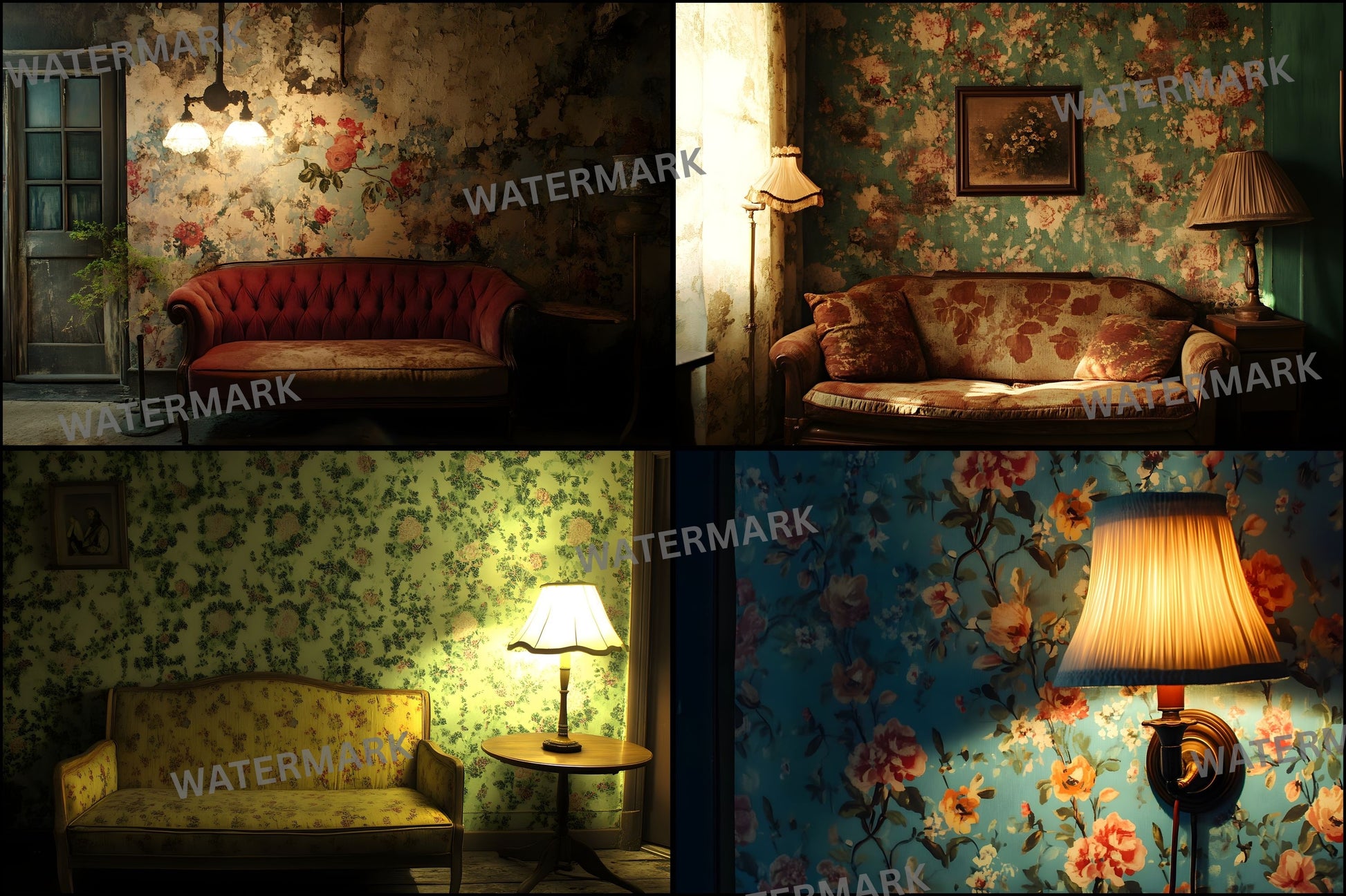 Vintage Wallpaper Room Digital Backdrop, Photography Backgrounds, Antique Interior Photo Prop, High-Res Image Download