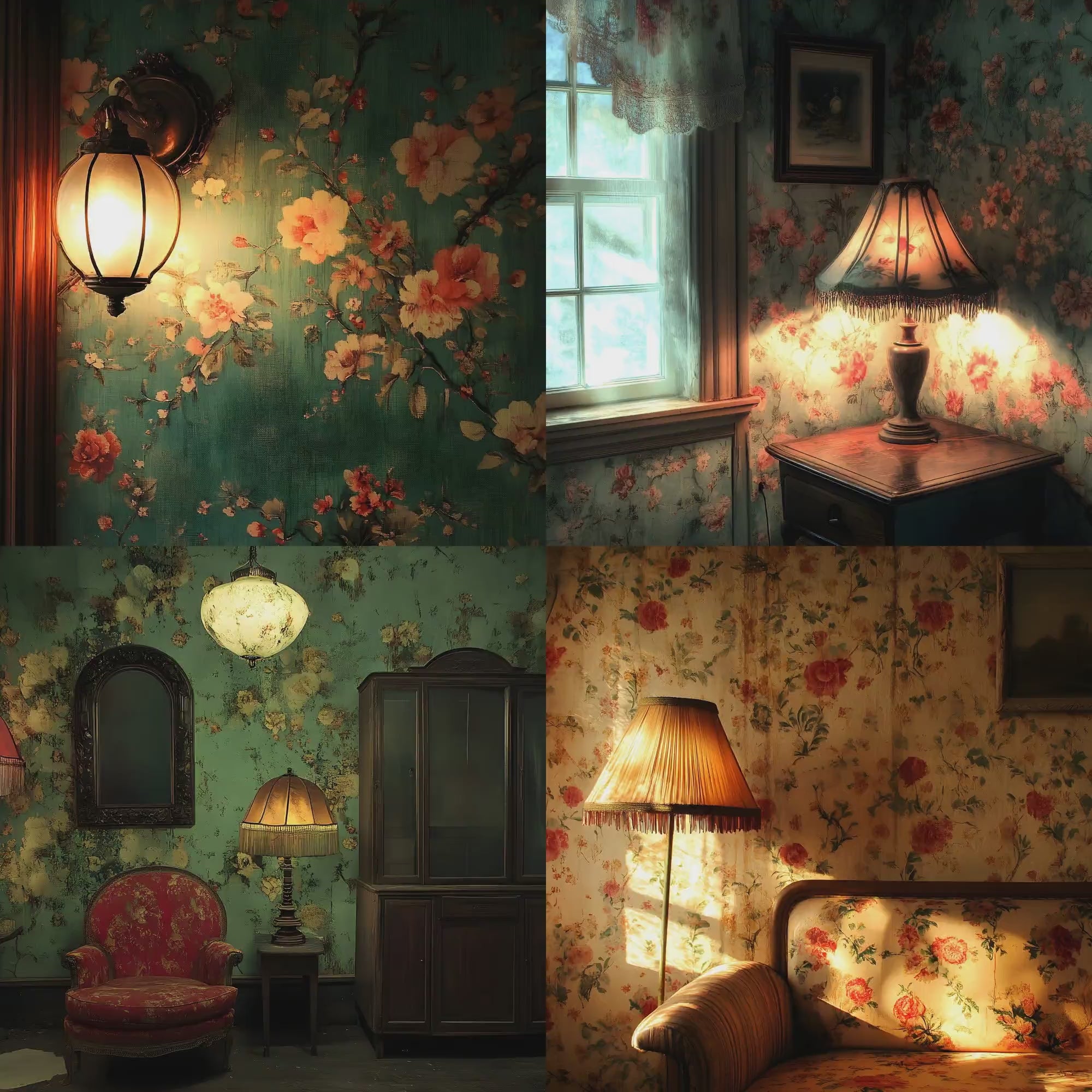 Vintage Wallpaper Room Digital Backdrop, Photography Backgrounds, Antique Interior Photo Prop, High-Res Image for Photographers