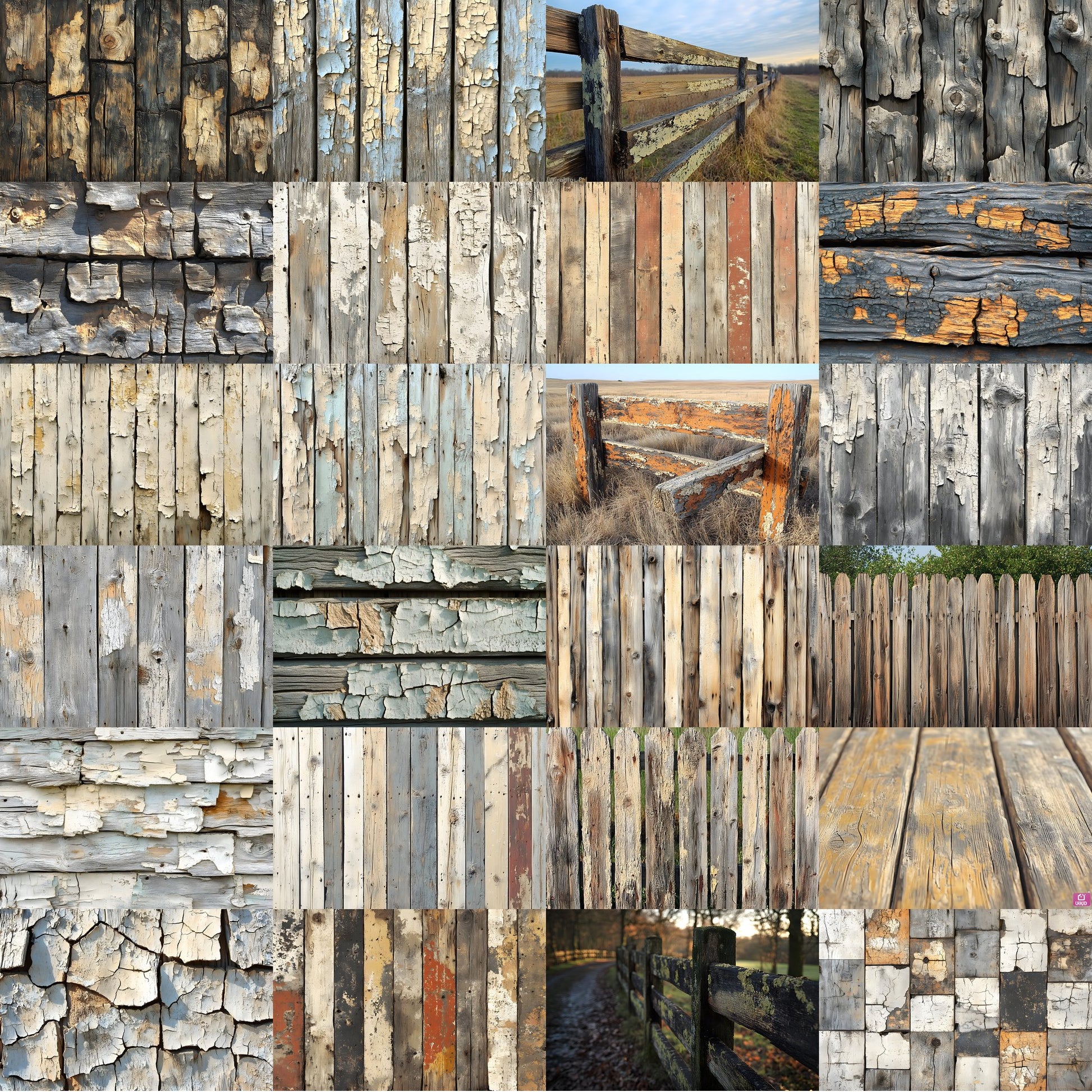 Weathered Wood Fence Digital Backdrop Set, Photography Backgrounds, Rustic Wood Photo Prop, Outdoor Scene, High-Res Images for Composites