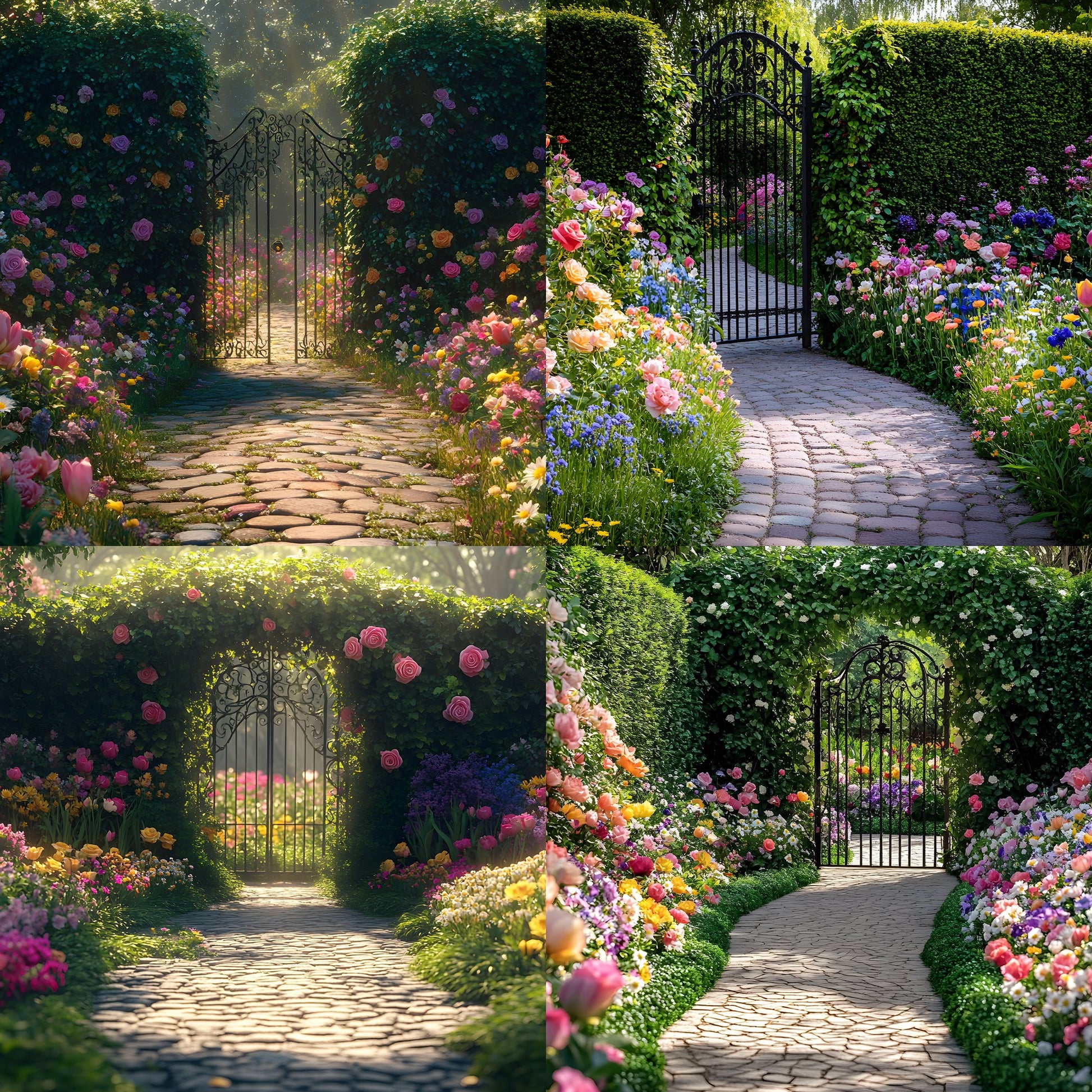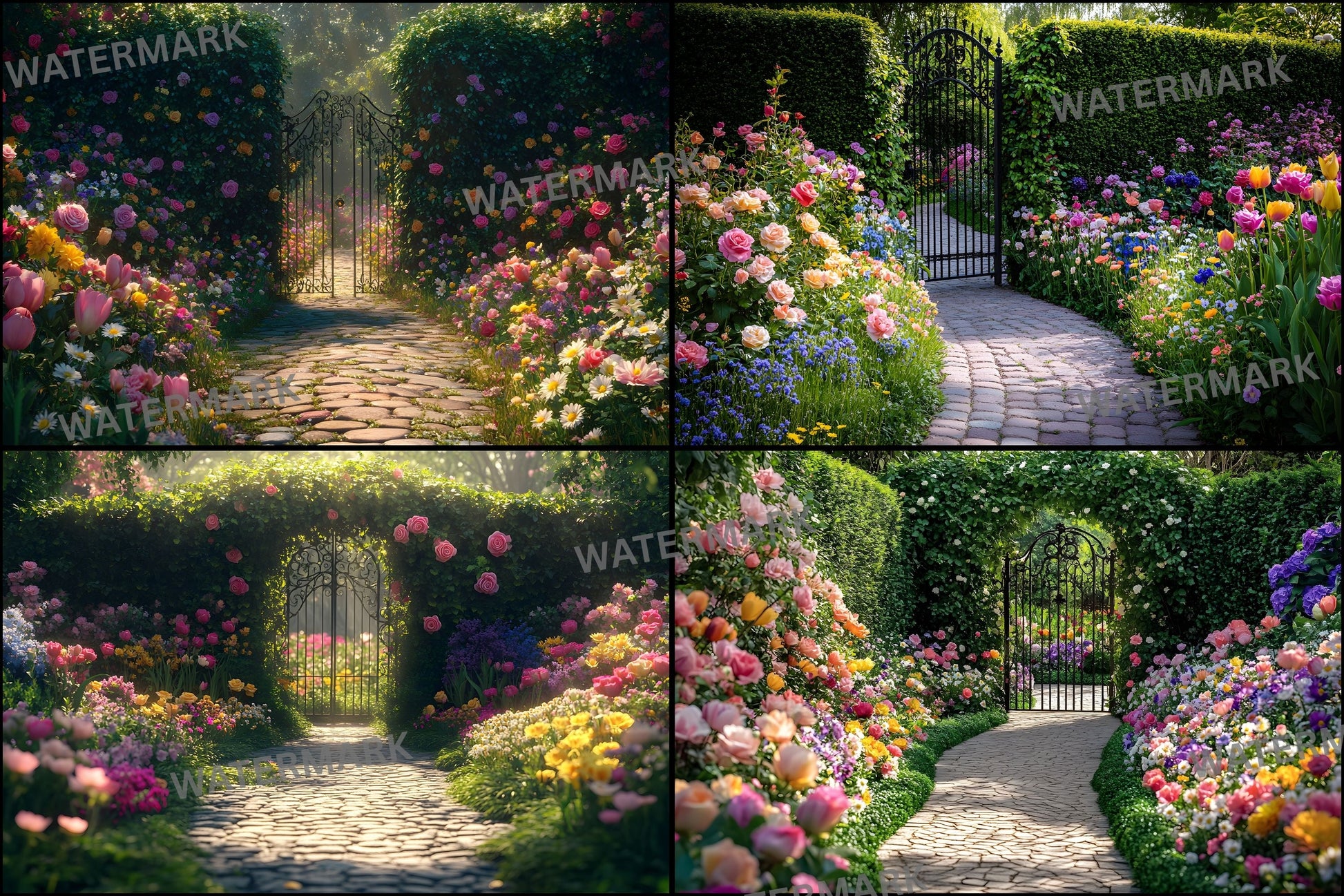Whimsical Flower Garden Digital Backdrop, Lush Floral Backgrounds, Photography, Fantasy Photo Overlays, Springtime Scene
