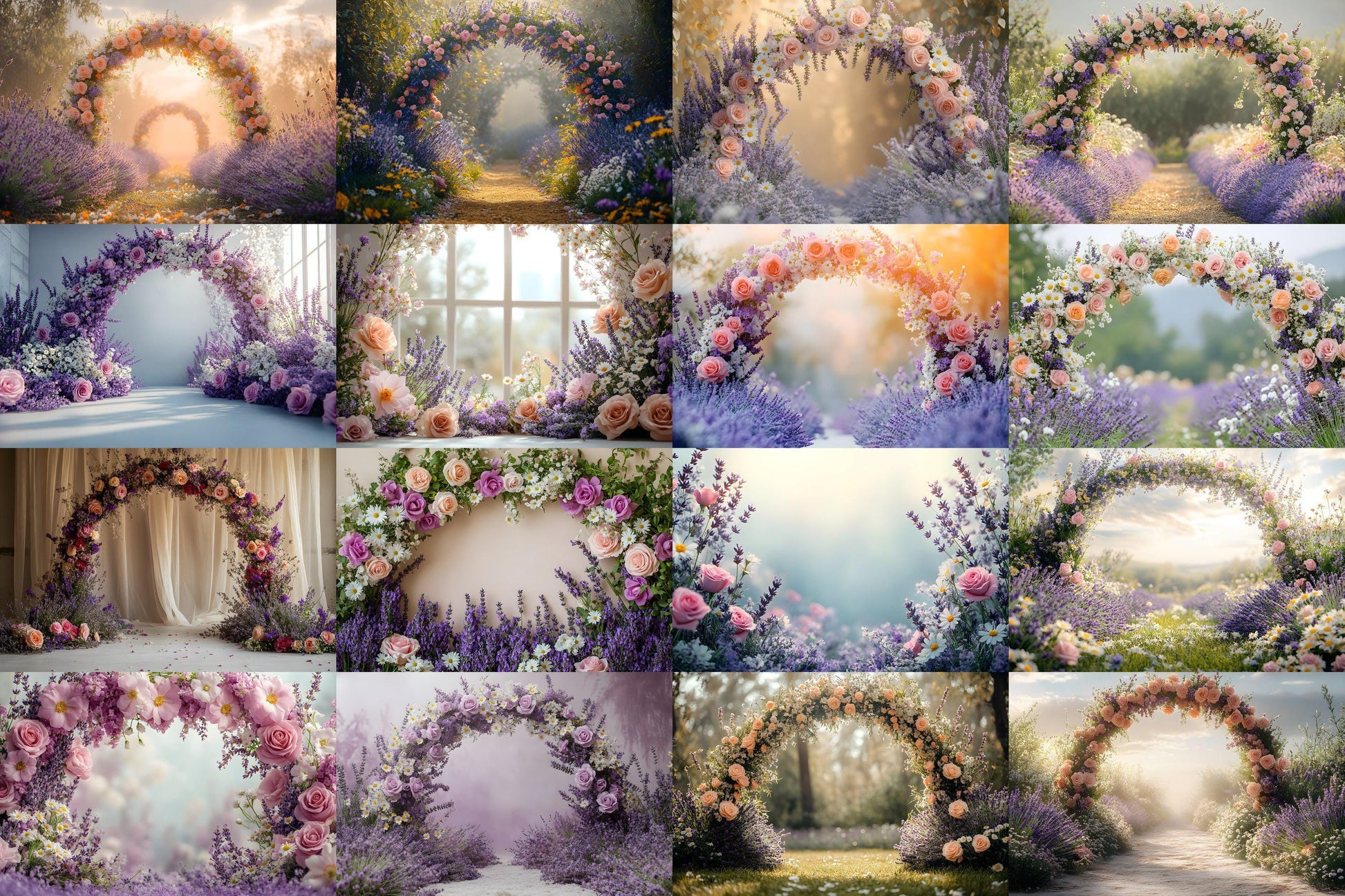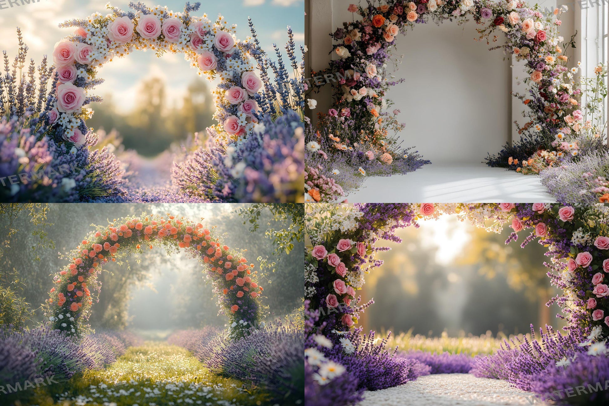 Wildflower Archway Photography Backdrop - Romantic Floral Digital Background for Weddings, Events & Spring Photoshoots