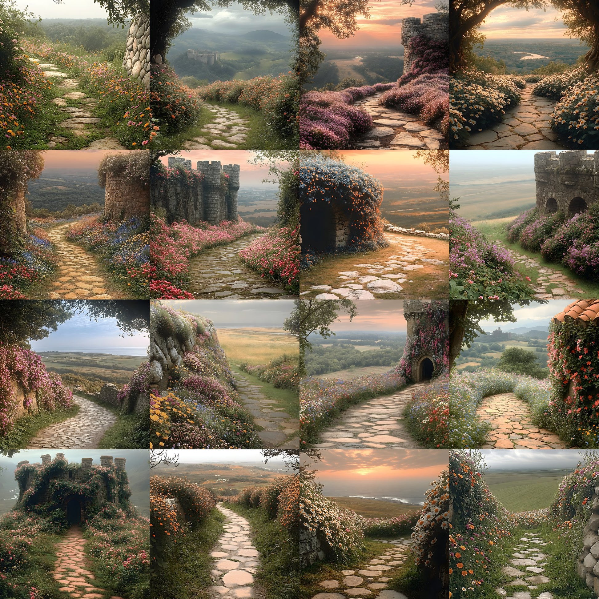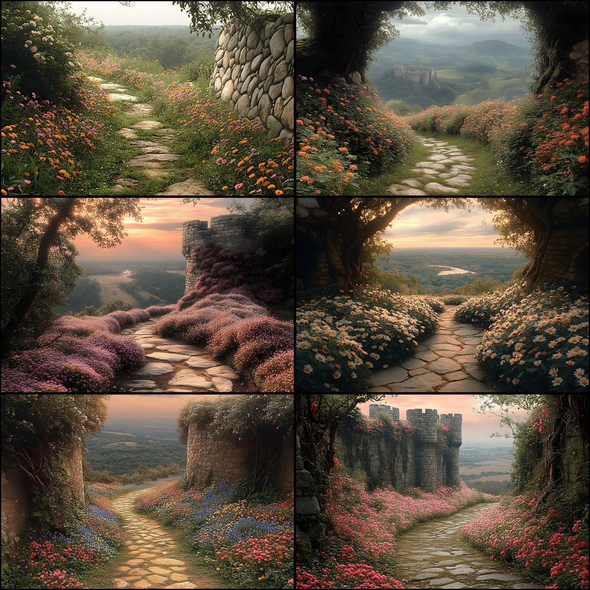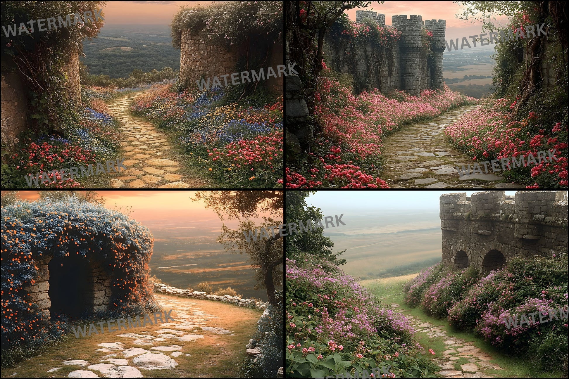 Wildflower Castle Backdrop, Wall View Digital Backgrounds, Fantasy Photography, Images, Enchanted Scene, Dreamy Photo Overlays