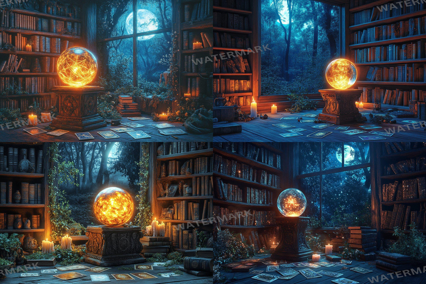 Witch Crystal Ball Backdrop: 4PNGs for Mystical Fortune Teller Photos, Magical Halloween Decor, Occult Divination Digital Backdrops