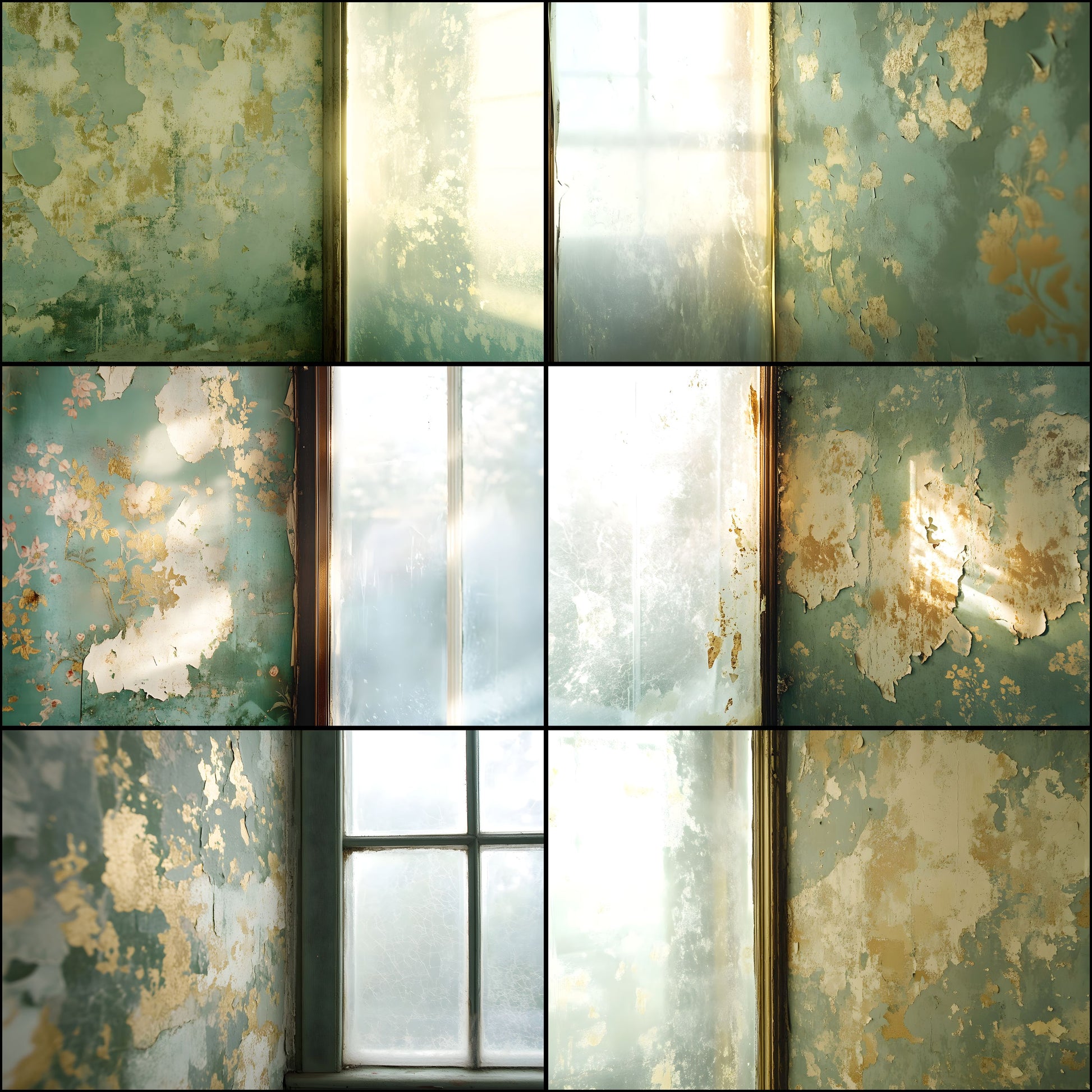 Elevate your photography with this Worn Vintage Wallpaper Digital Backdrop. The diffused light and textured paper create a stunning, timeless aesthetic, perfect for portraits and product photography. Use it as a unique photo booth prop or add depth to your digital art. This photography background brings a touch of vintage charm to any project. The worn wallpaper look offers a realistic, aged feel, ideal for creating evocative and artistic images.